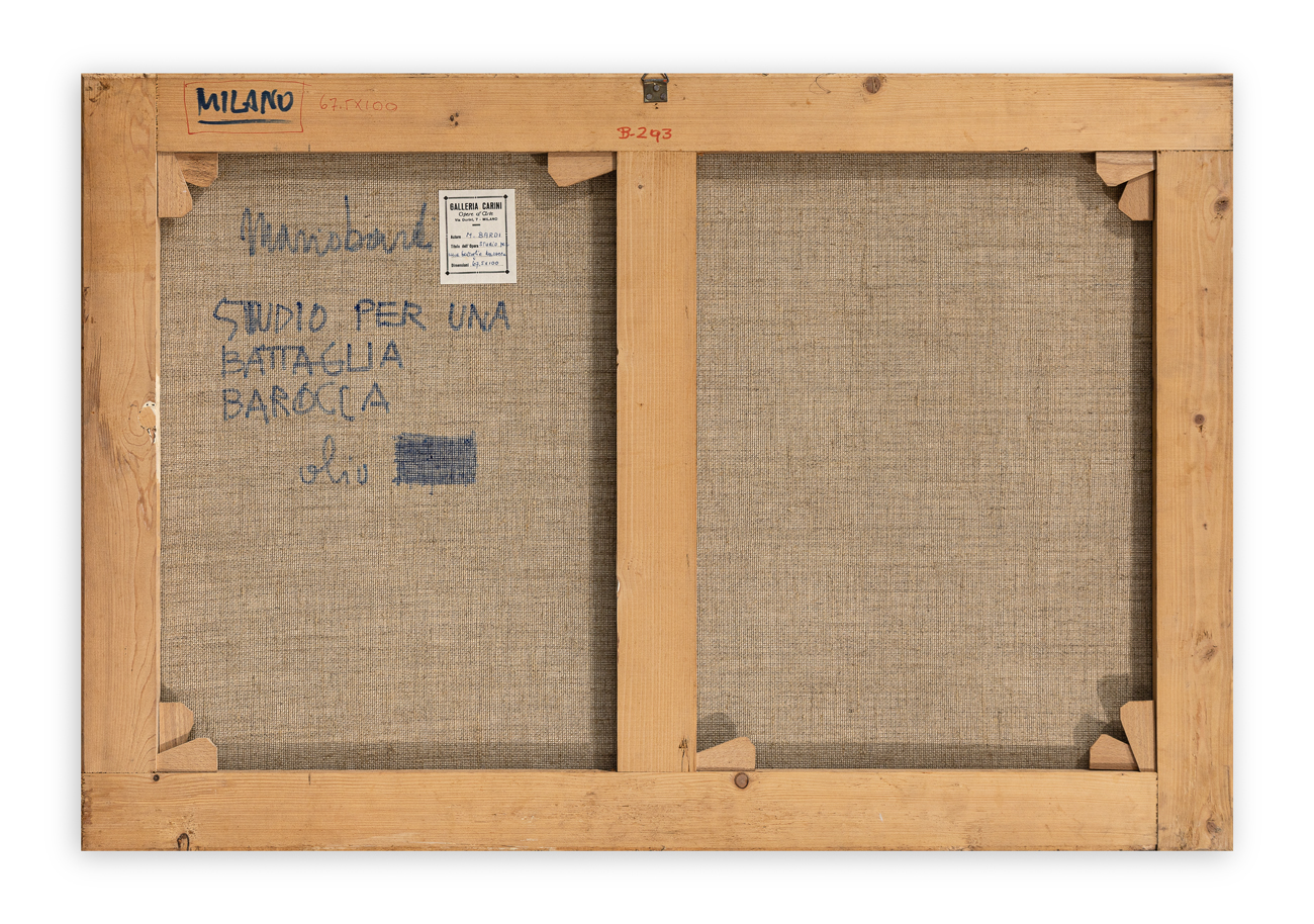 Firma, titolo, tecnica e etichetta della Galleria Carini (MI) al retro