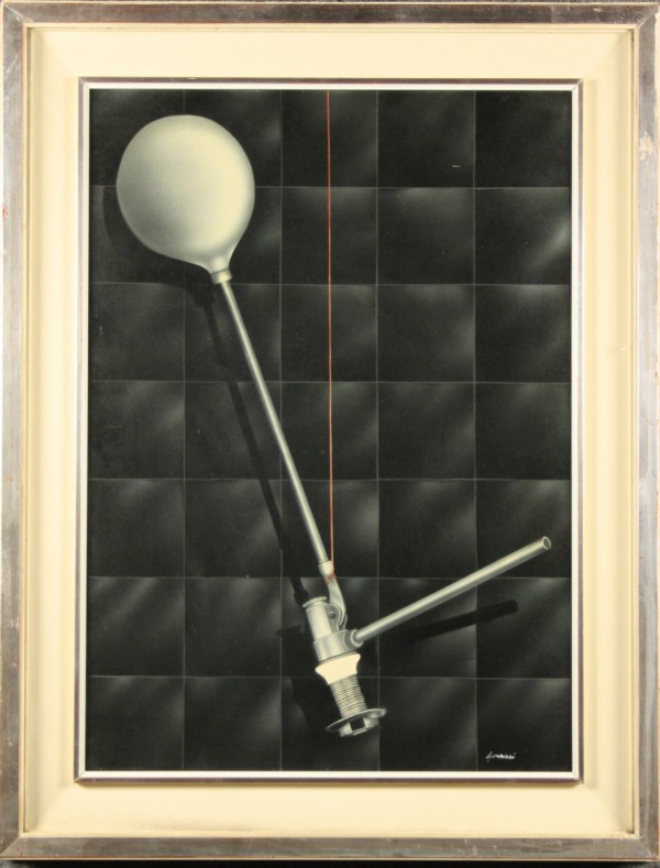 Dipinto olio su tela raff. ''SOGGETTO SURREALE''. Firmato ANGELO MASI. Mis. Lung. cm. 50 Alt. cm. 70 ca.