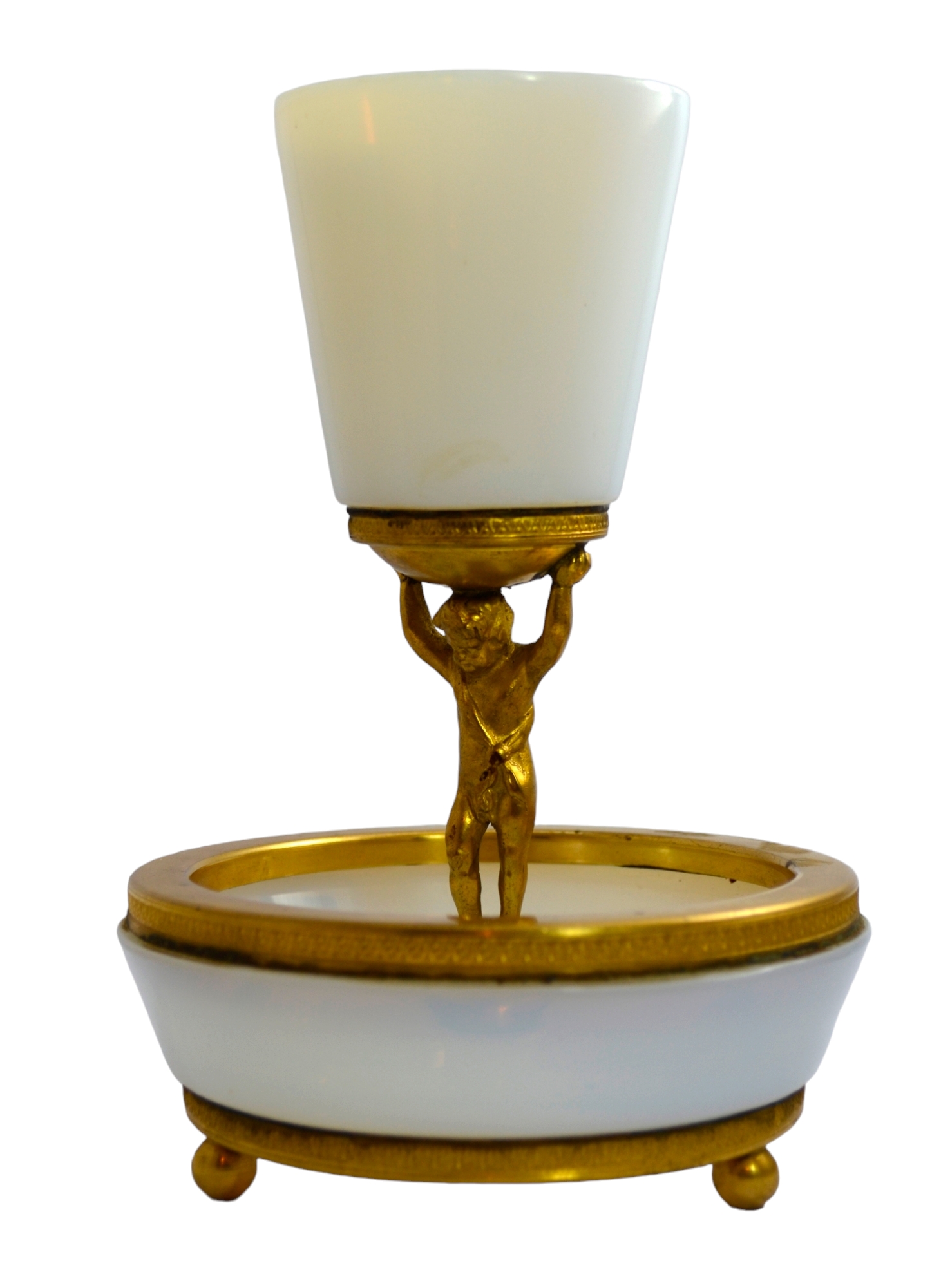 PICCOLA FIORIERA in opaline, putto in bronzo a sostenere un vasetto Francia fine 800 h cm 20 x 13,5