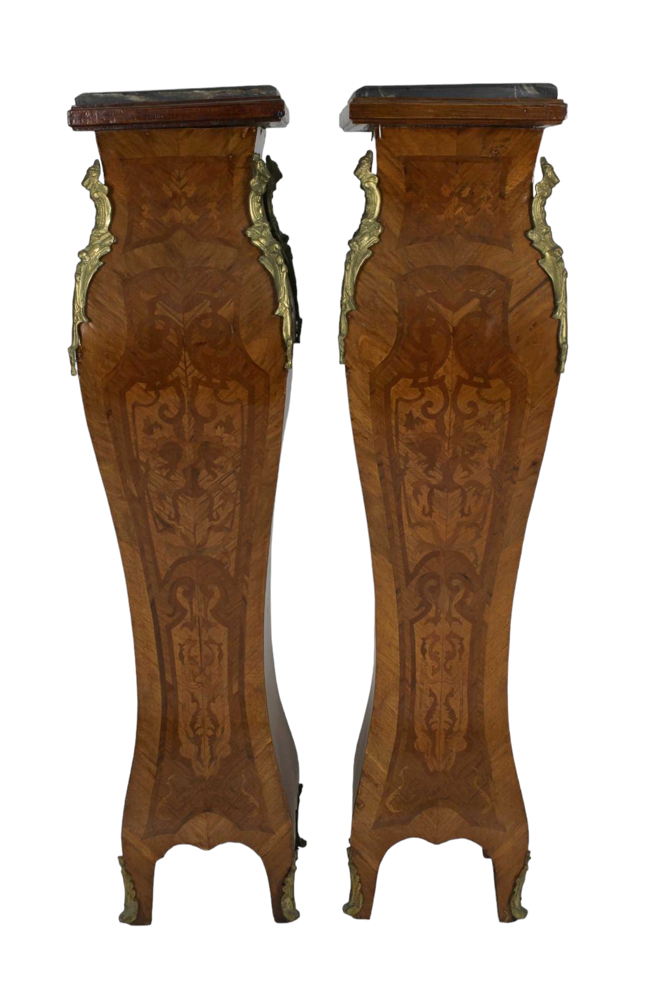 COPPIA CANTONI DI STILE FRANCESE in noce e tarsie di varie essenze vintage h cm 112 x 28 x 30