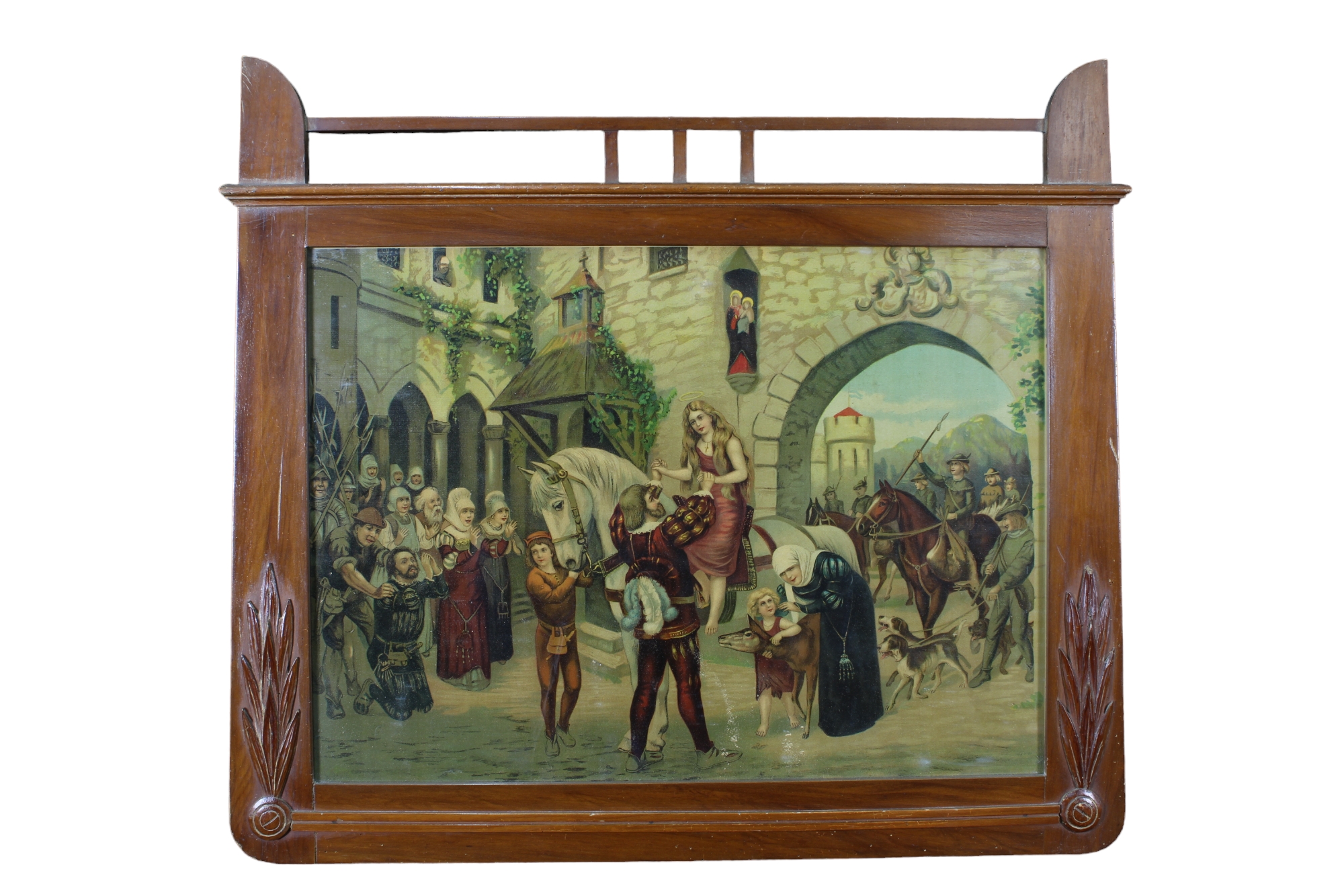CORNICE DECO' in legno di noce contenente stampa colorata Sicilia primi 900 h cm 79 x 87,5