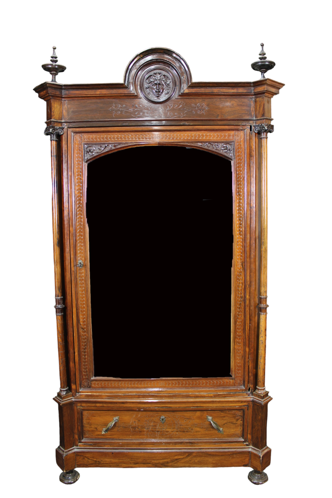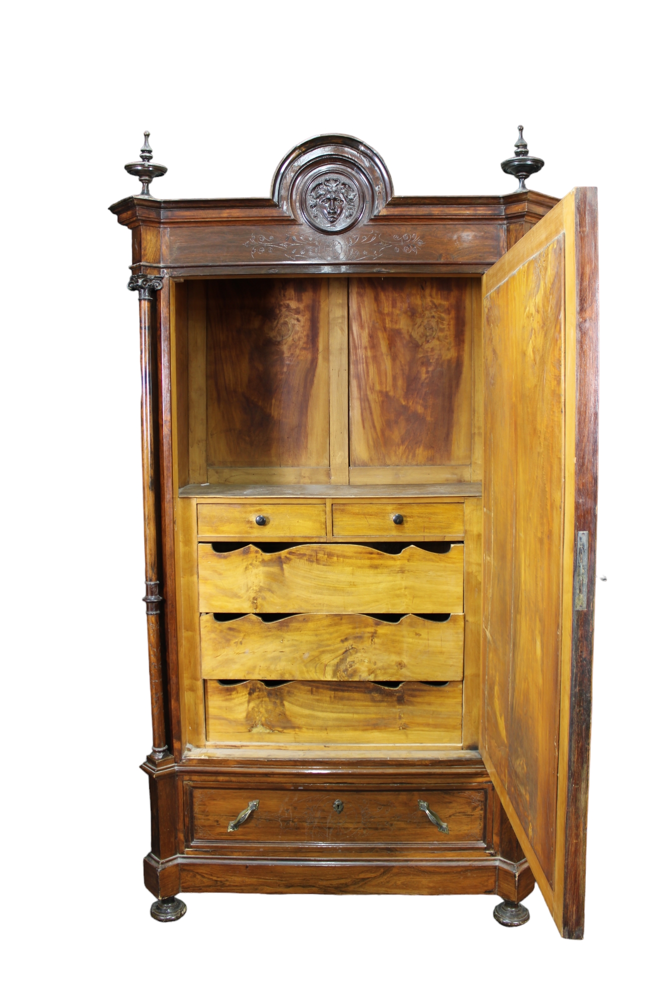 ARMADIO in palissandro ad un anta cimasa scolpita raffigurante medusa Sicilia XIX secolo Sicilia XIX secolo h cm 245 x 134 x 63