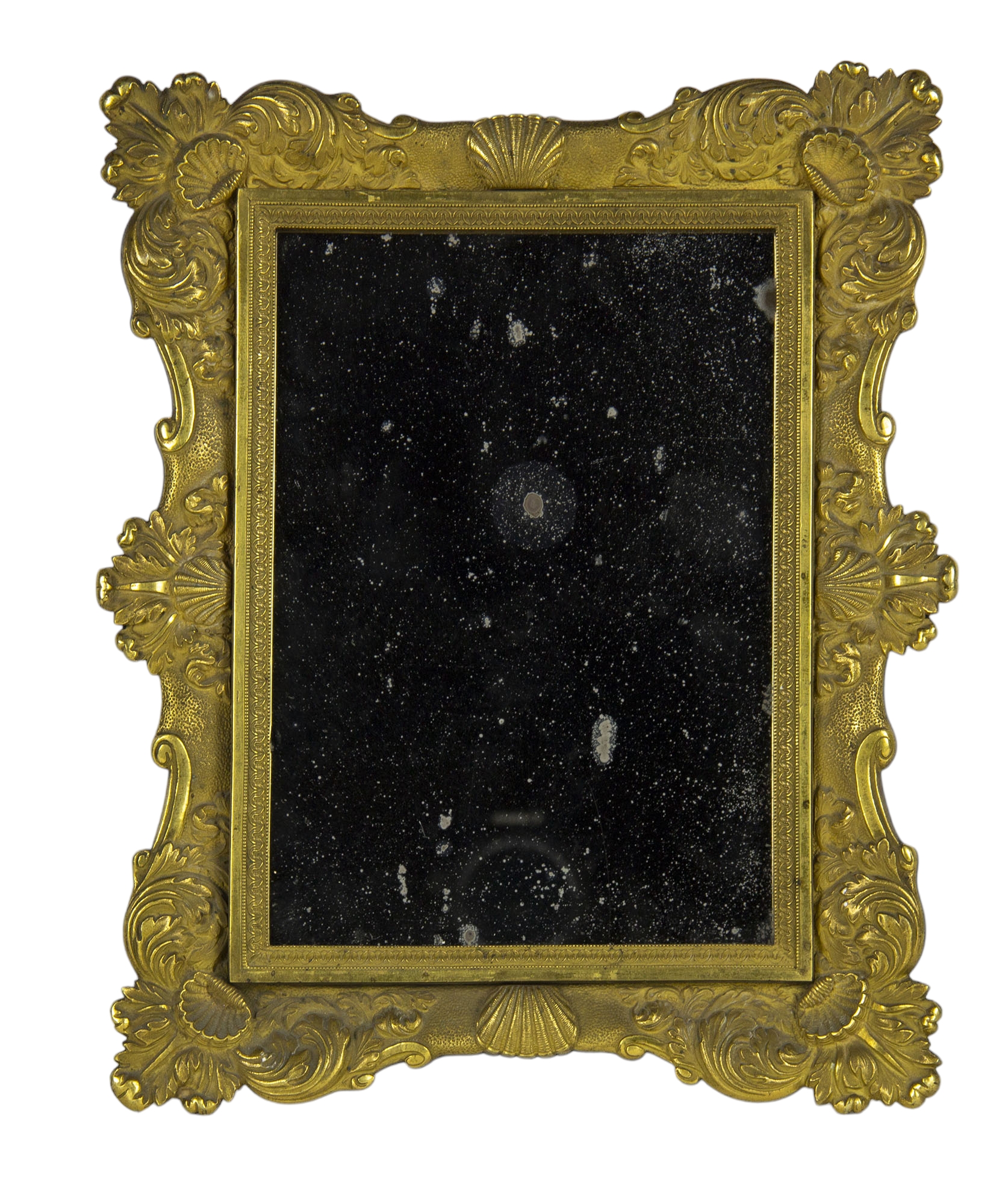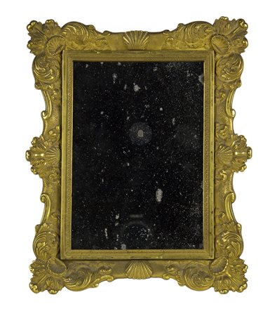 SPECCHIERA D'APPOGGIO in bronzo finemente cesellato e dorato al mercurio Francia XIX secolo h cm 28 x 22