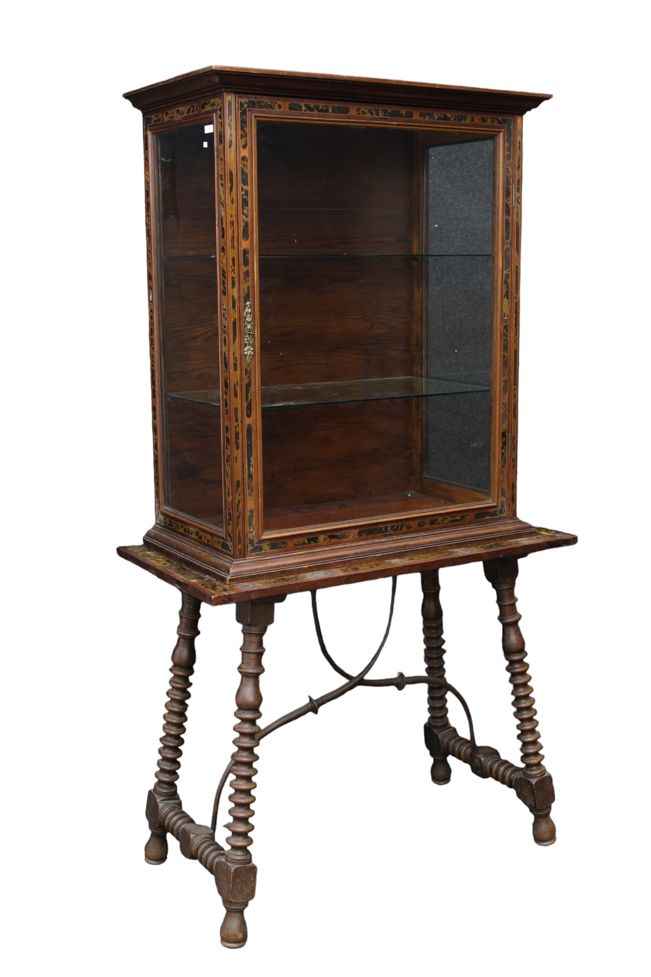 ELEGANTE VETRINA con base fratina lastronata in legno di palissandro e intarsiata con materiale pregiato Sicilia fine 700 primi 800 h cm 178 x 96 x 50