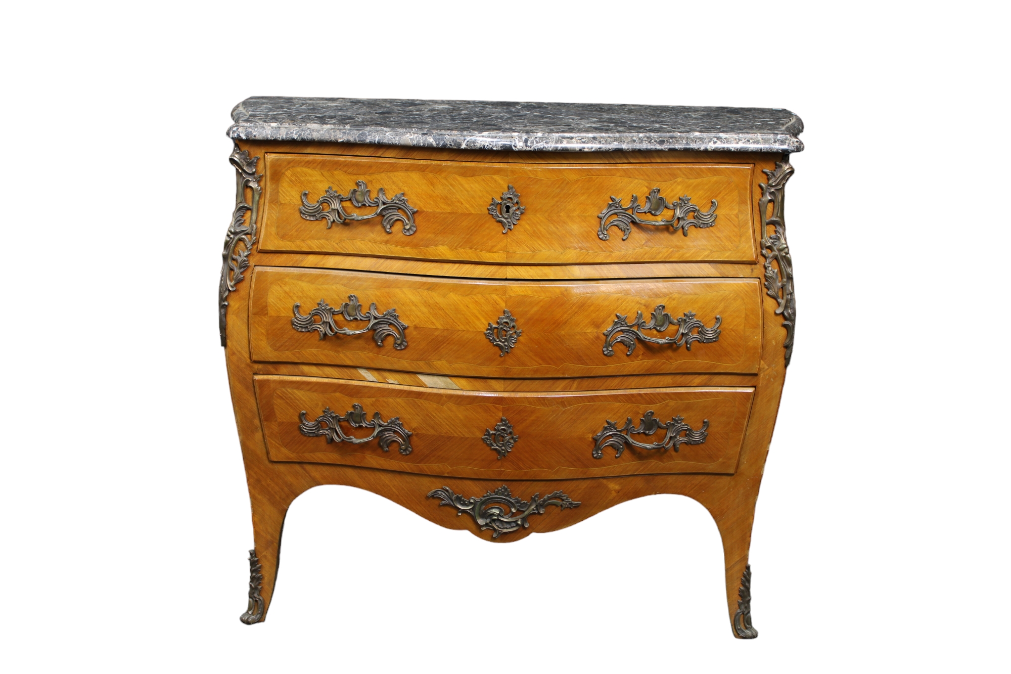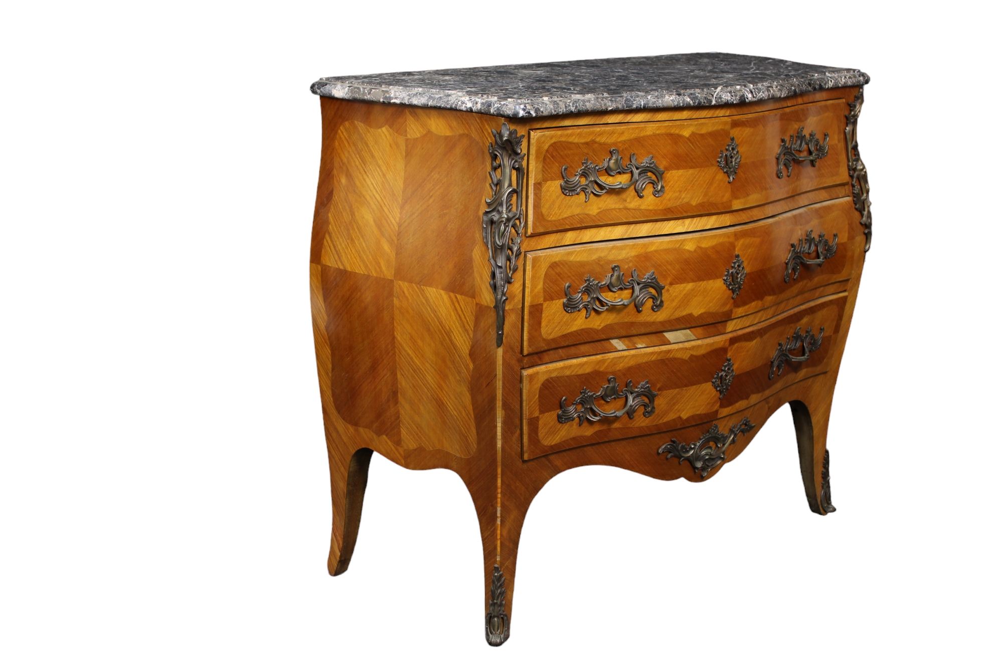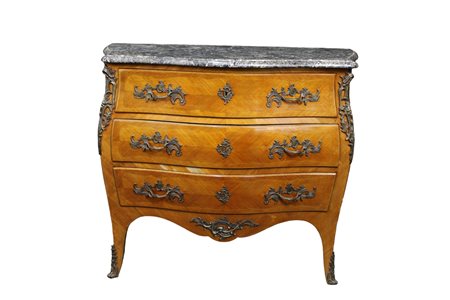 CASSETTONE NAPOLEONE III a tre cassetti lastronato in varie essenze di legno arricchito da serramenti e fregi in bronzo cesellato piano in marmo breccia Francese ebanisteria Francese XIX Secolo h cm 89 x 105 x 49