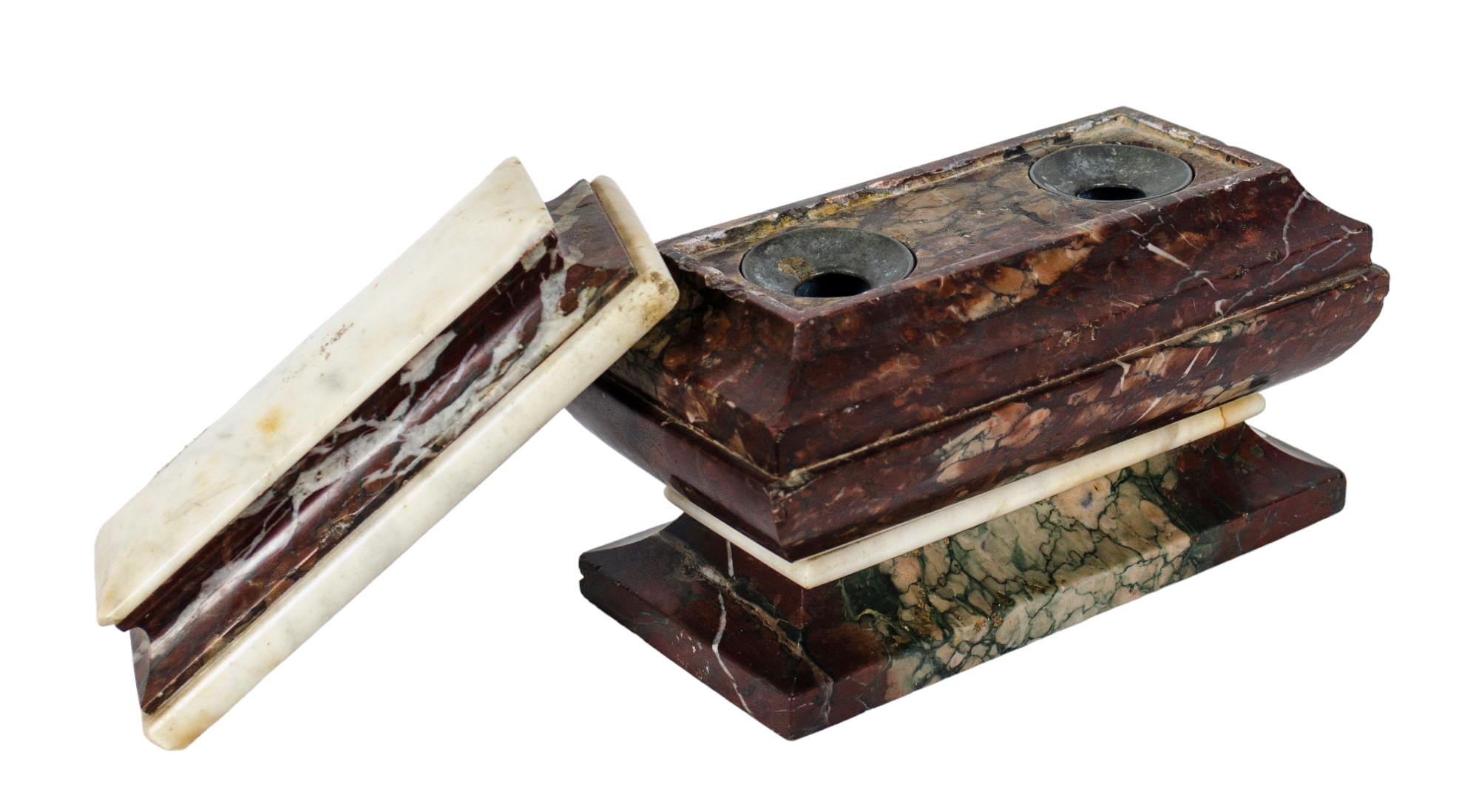 CALAMAIO realizzato in marmi mischi periodo del Grand Tour Roma XIX secolo h cm 12,5 x 17,5 x 9