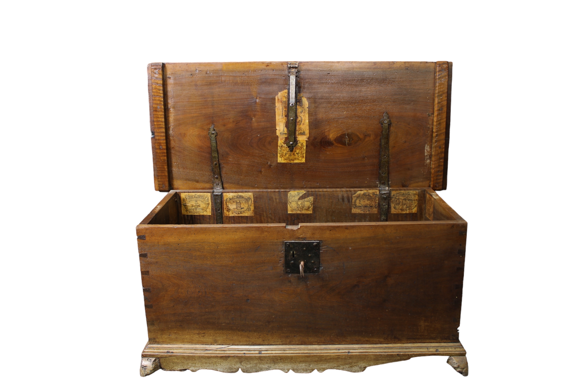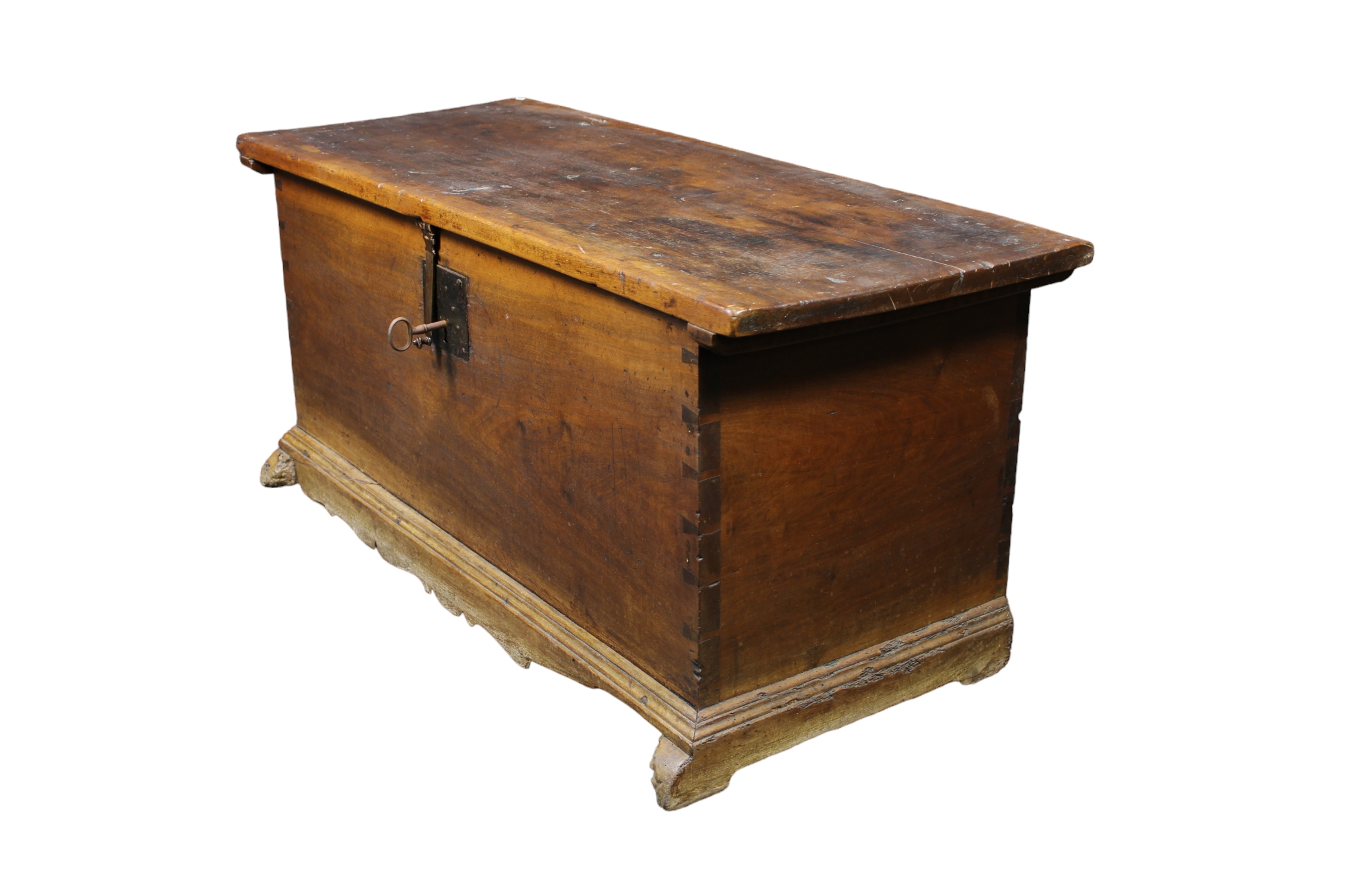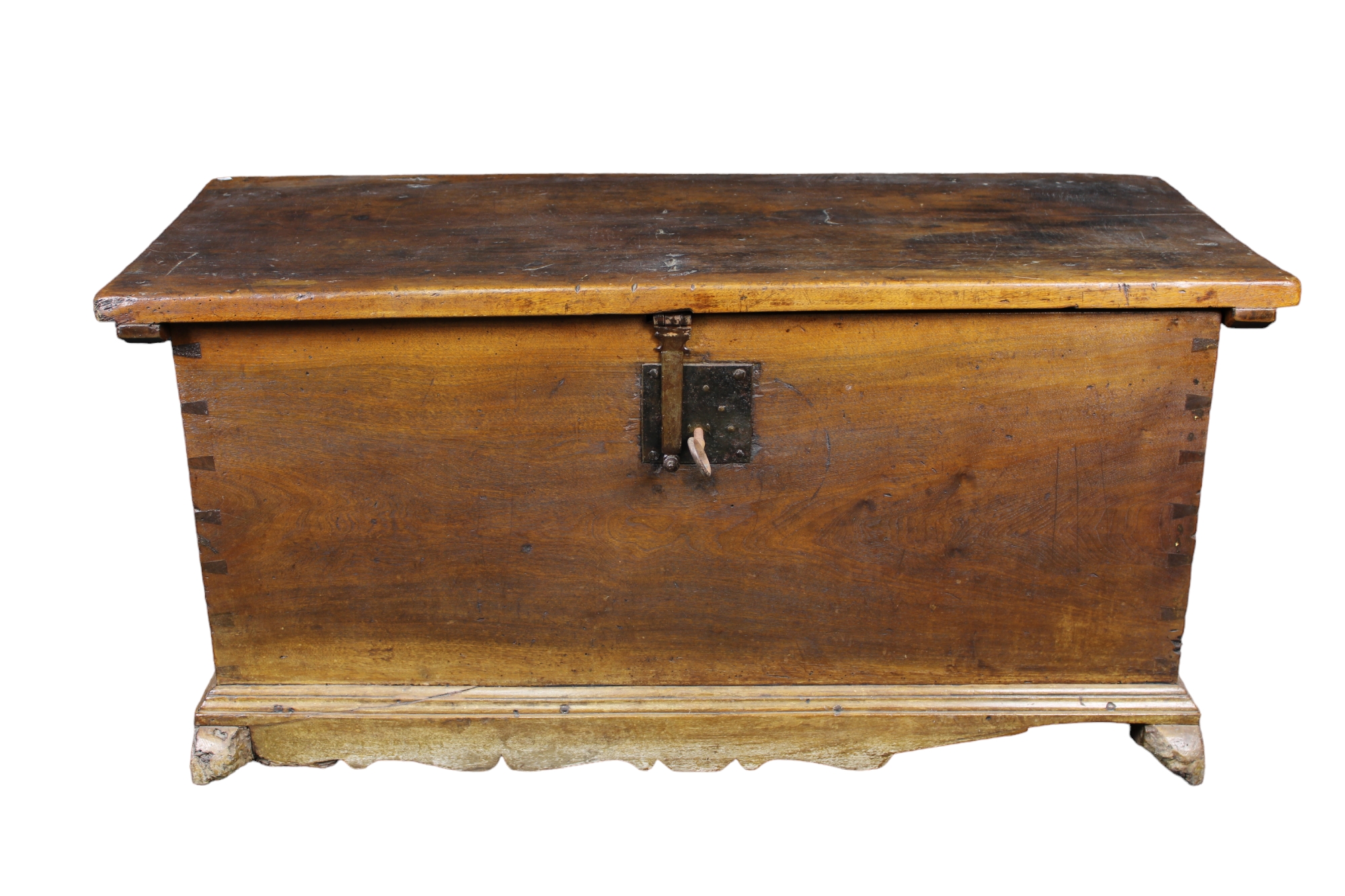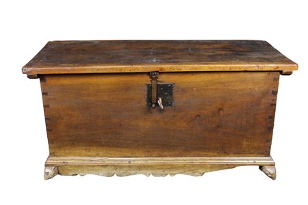 CASSAPANCA in legno di noce con serramenti in ferro, usure e mancanze Sicilia XVIII secolo h cm 55 x 120 x 51,5