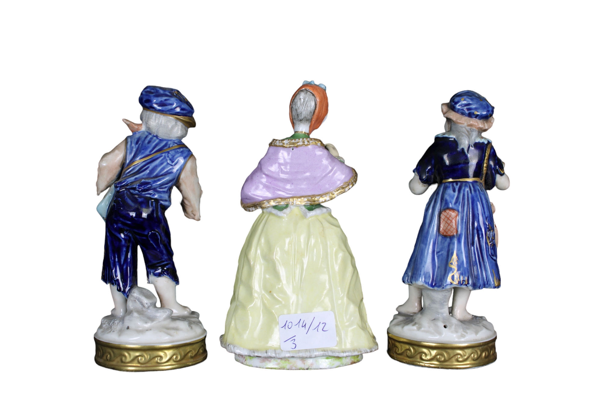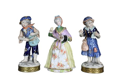 LOTTO COMPOSTO DA tre sculture in porcellana di cui una raffigurante donna manifattura Meissen XIX Secolo e due sculture raffiguranti fanciulli manifattura inglese Primi 900' h cm 14 x 8 x 6 / h cm 14 x 5,5