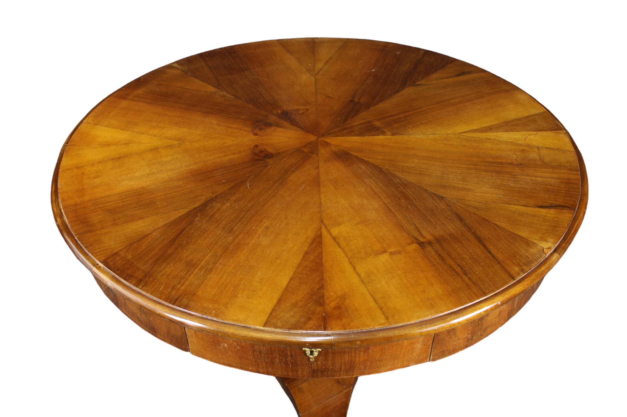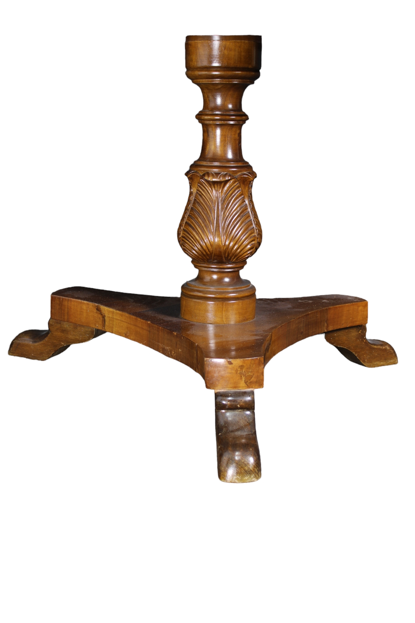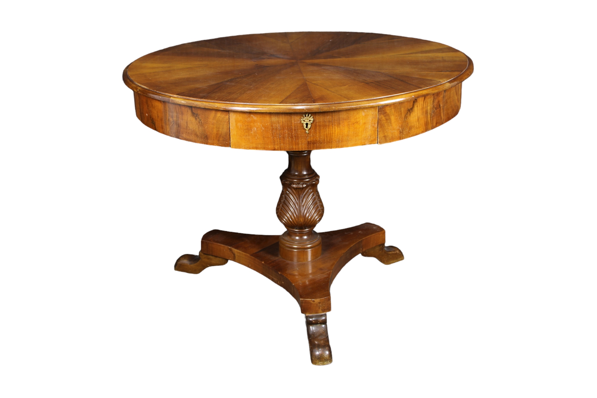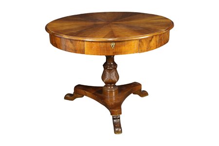TAVOLO DA CENTRO in noce a piede centrale scolpito e 4 cassetti Sicilia XIX secolo h cm 80 x Ø 120