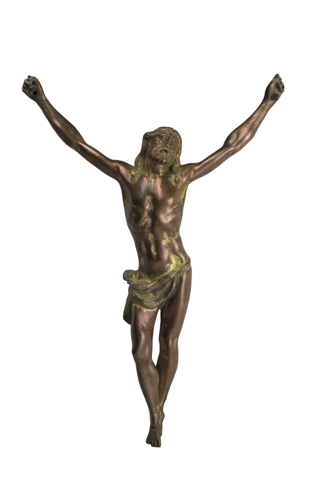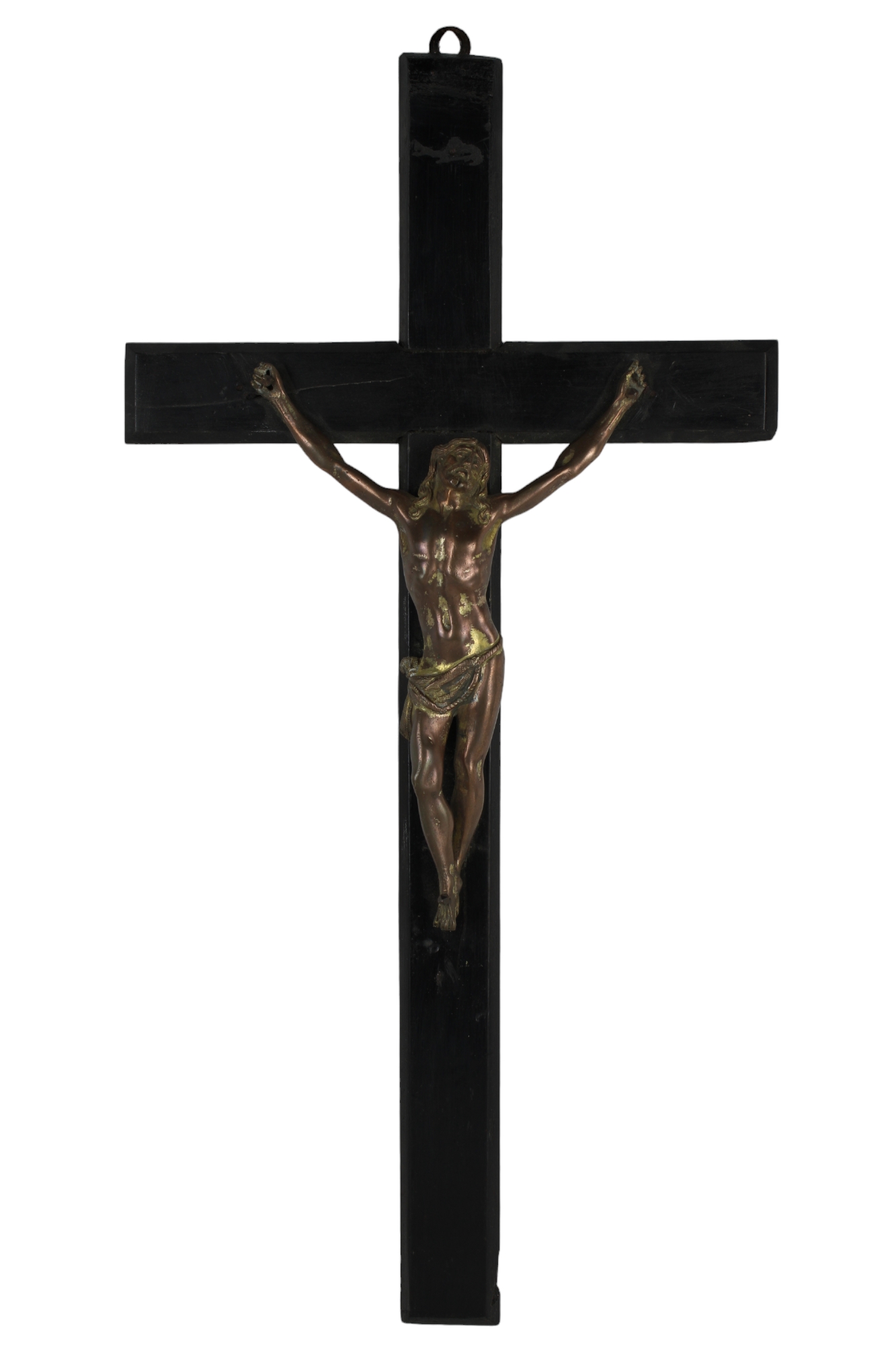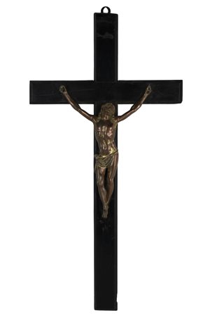 CROCIFISSO in bronzo con croce in legno ebanizzato Sicilia XIX secolo h cm 46 x 23