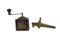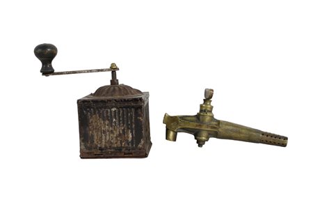 LOTTO COMPOSTO DA antico rubinetto in ottone e un macina caffe in metallo periodo e provenienze diverse h cm 16 x 9 x 9 / h cm 18,5 x 9