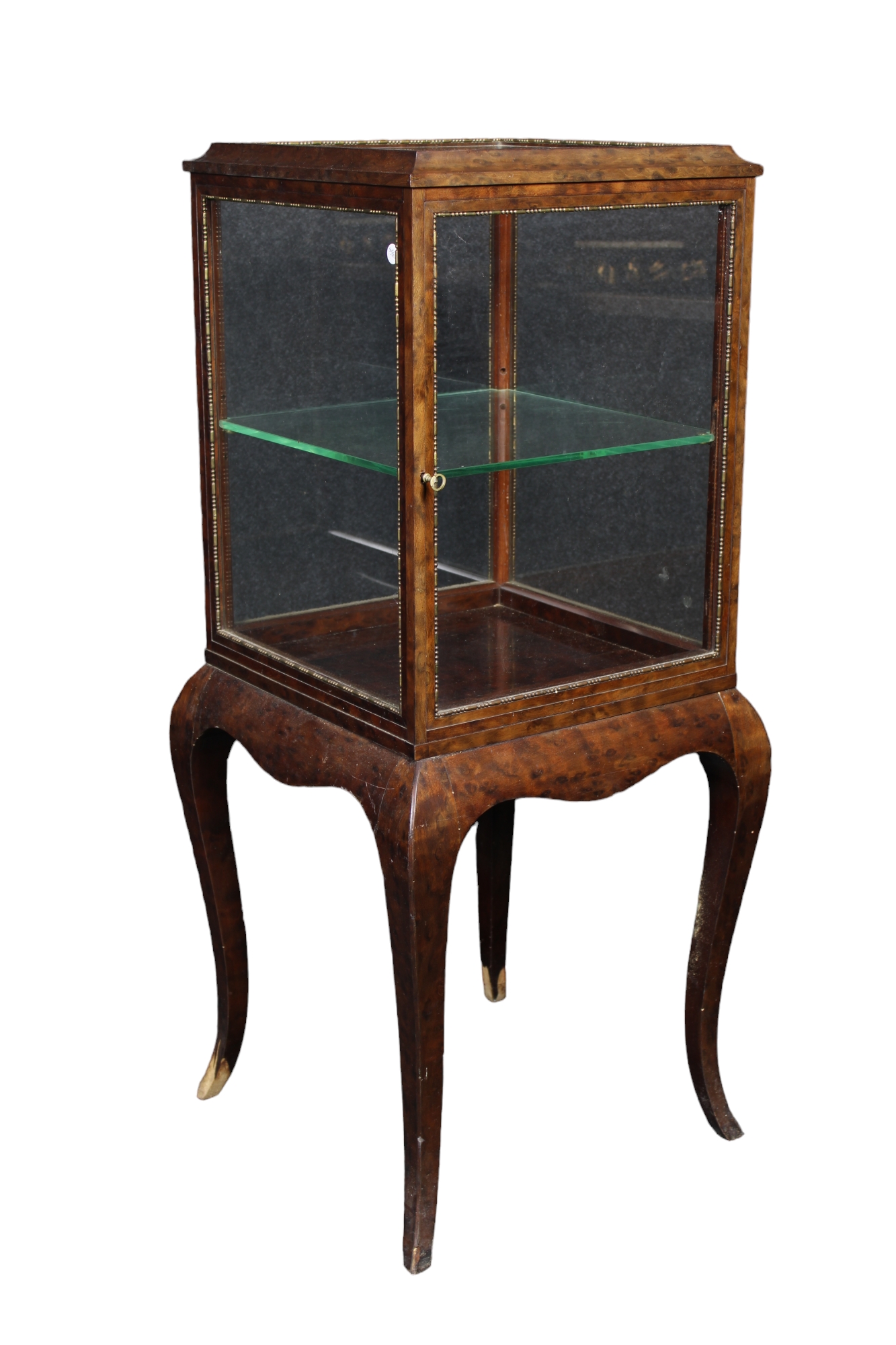 VETRINETTA DA CENTRO in radica di olmo e applicazioni in metallo dorato Inghilterra primi 900 h cm 107 x 46 x 46