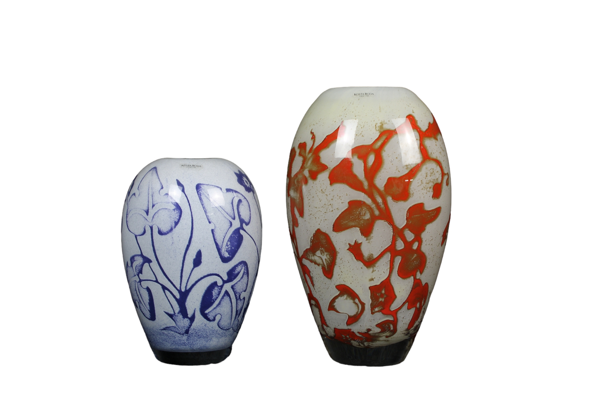 LOTTO COMPOSTO DA due vasi in vetro colorato manifattura Kosta Boda Primi 900' h cm 27,5 x 16 x 10 / h cm 20,5 x 13 x 10