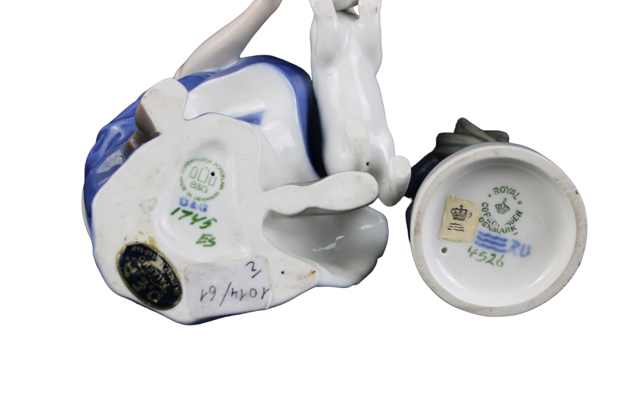 LOTTO COMPOSTO DA due sculture in porcellana di cui una manifattura Royal Copenaghen l'altra B & G Copenaghen XX secolo h cm 16 x 7 / h cm 14,5 x 15,5