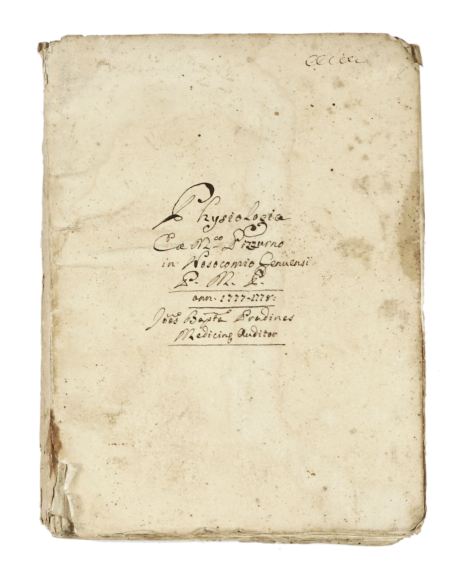 Medicae Institutionis Prole/gomena / pseu / Physiologia [...]. Datato 1777-1778.