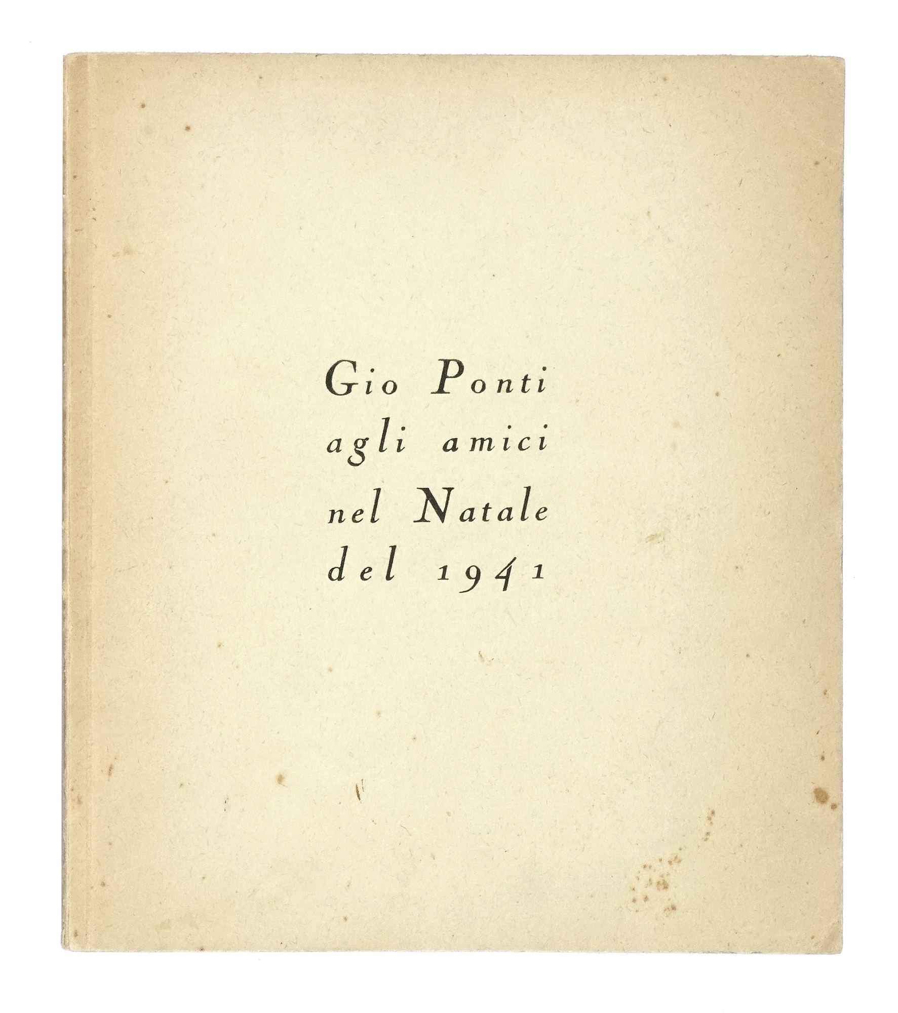 In-16° (mm 175x150). Carte [36] con, nel testo, 26 tavole in bianco e nero di Luigi Bartolini, Massimo Campigli, Giorgio de Chirico, Filippo de Pisis, Aligi Sassu, Carlo Carrà e molti altri. Presenti anche due disegni di Gio Ponti, riprodotti alla prima e ultima carta. Brossura editoriale con scritto, al piatto anteriore, Gio Ponti agli amici nel Natale del 1941. Lievi fioriture. (1)Rarissima strenna natalizia composta da Gio Ponti alternando, alle poesie della figlia Lisa, le tavole di alcuni tra i più importanti artisti dell'epoca, come Luigi Bartolini, Massimo Campigli, Giorgio de Chirico, Filippo de Pisis e molti altri.