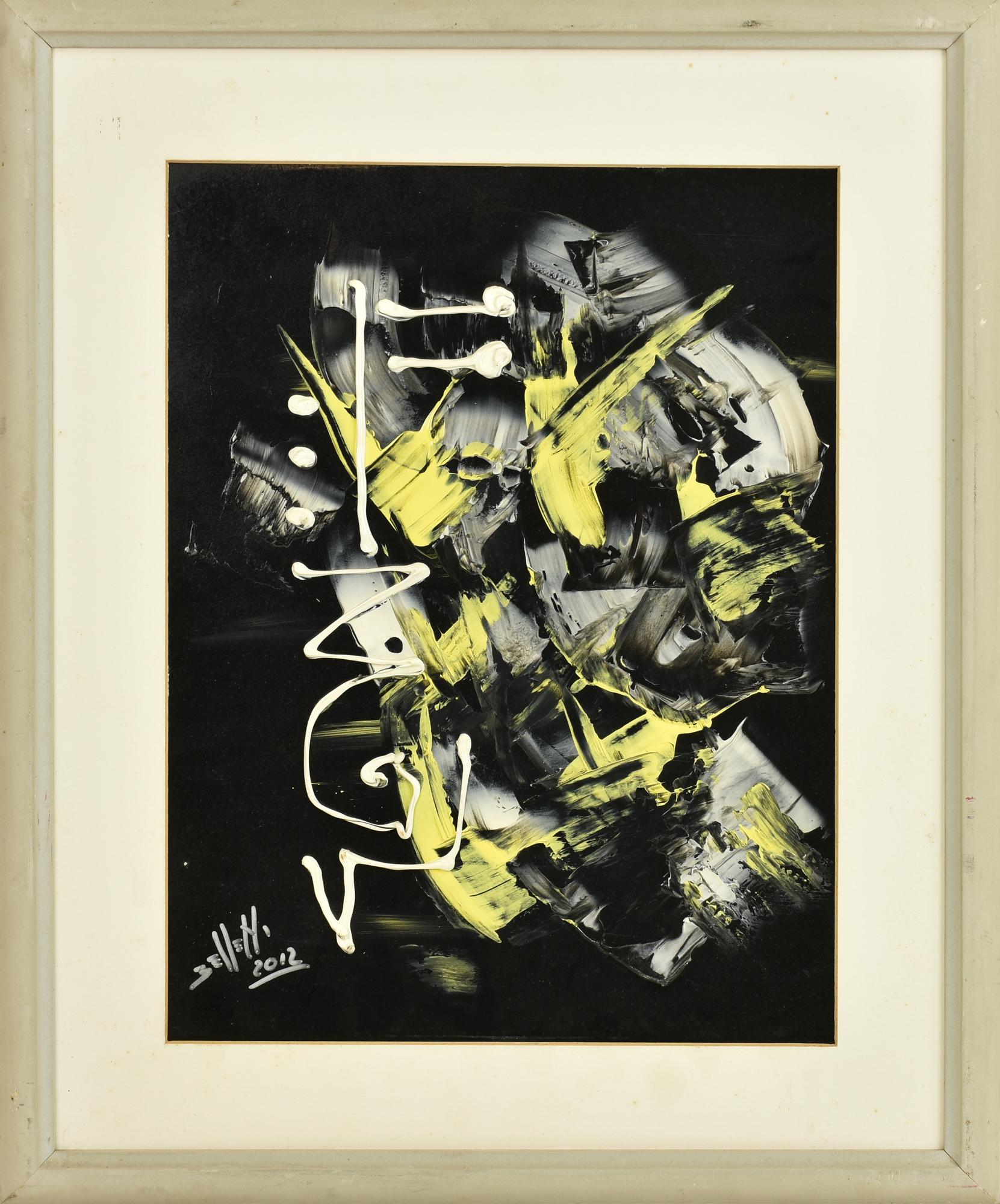 Lot 50 | Daniele Belleni USE YOUR ILLUSION II colle e smalti su tavola, cm 60x45 firma...
