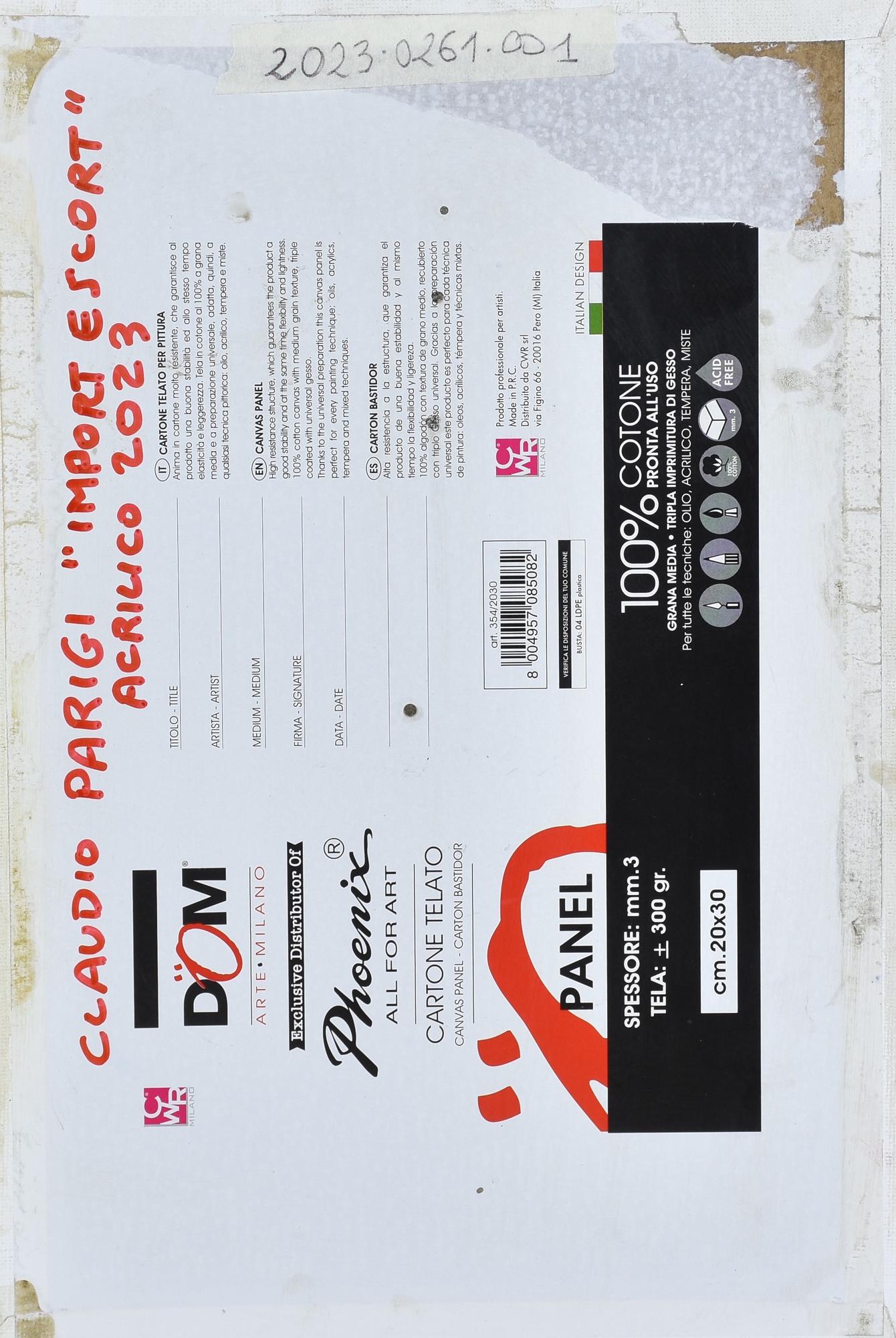 Claudio Parigi IMPORT ESCORT, 2023 acrilico cartone telato, cm 30x20 firma e...