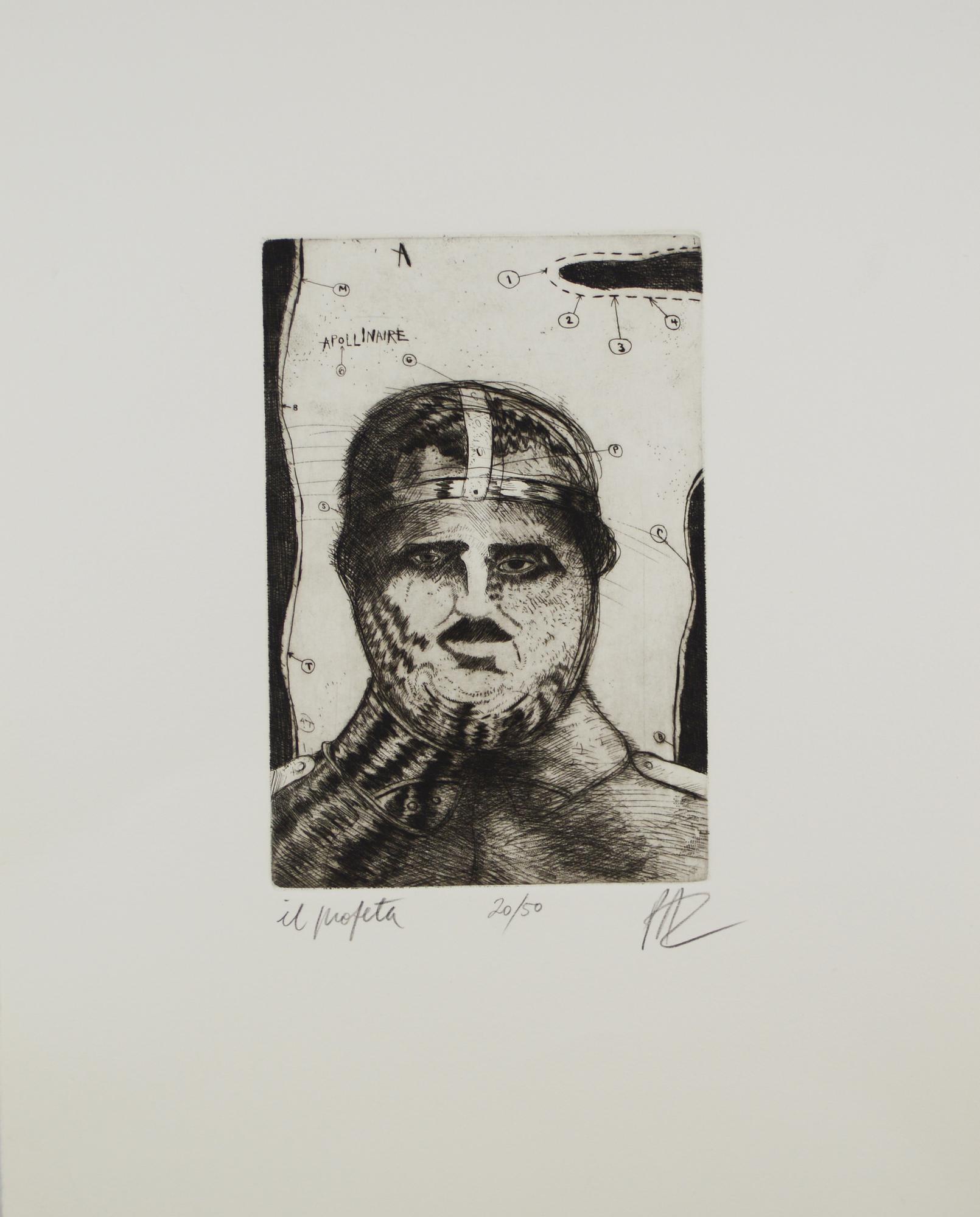 Julio Paz IL PROFETA acquaforte su carta, cm 30,2x15,5, su foglio cm...