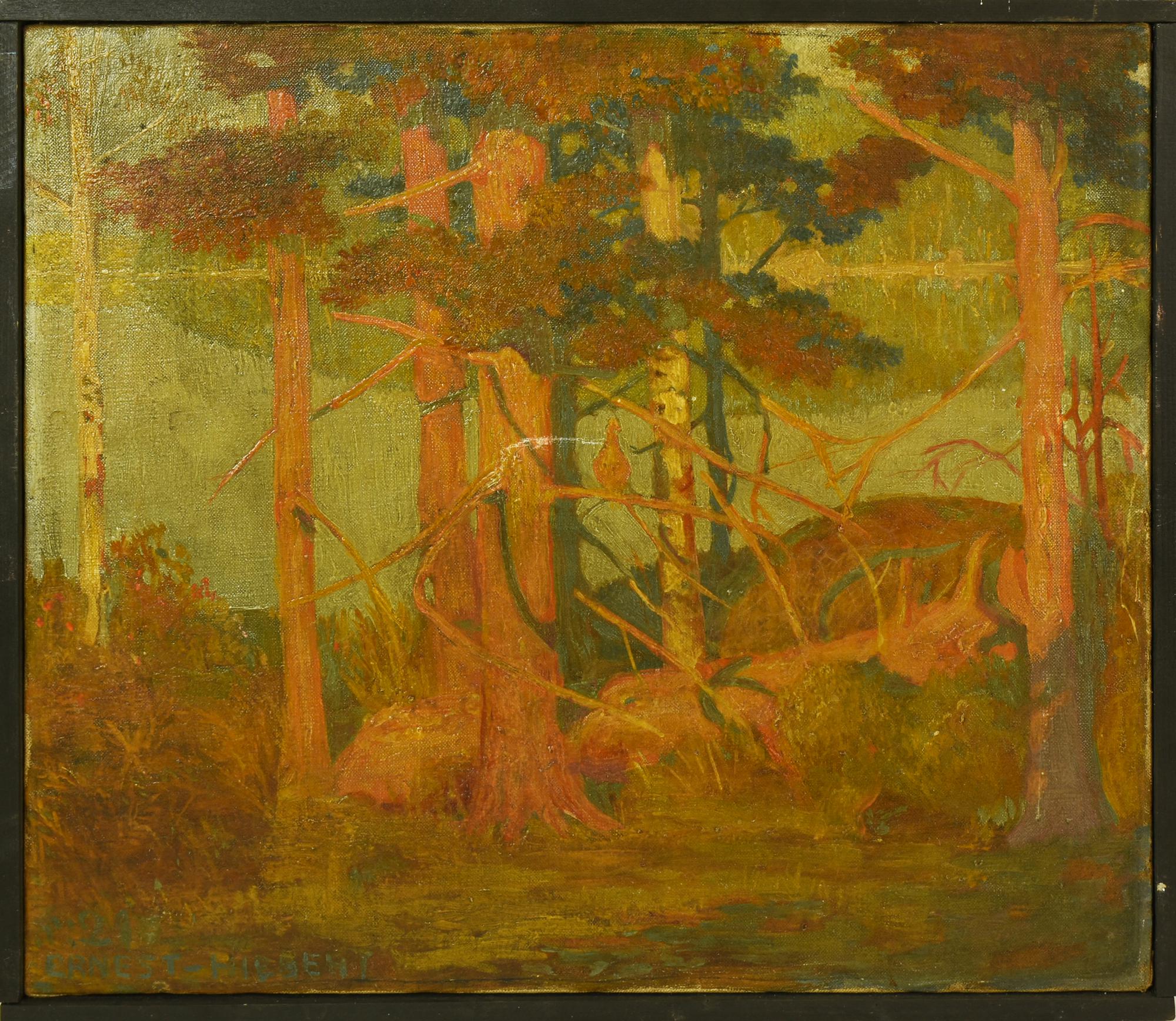 A firma Ernest Hiebeht BOSCO, 1921 olio su tela, cm 41x46 firma e data
