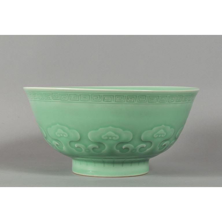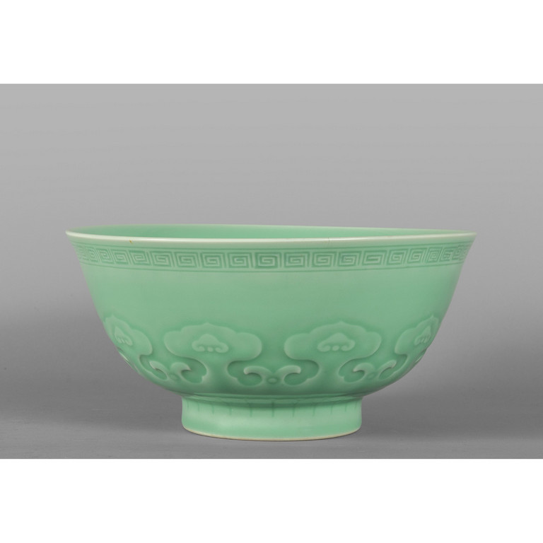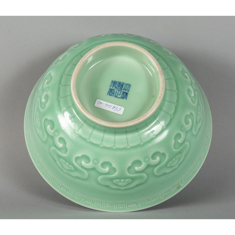 Coppa in porcellana Celadon decorata a motivi 'Ru-Yi' f.ta nel fondo 'Yong-Zheng'