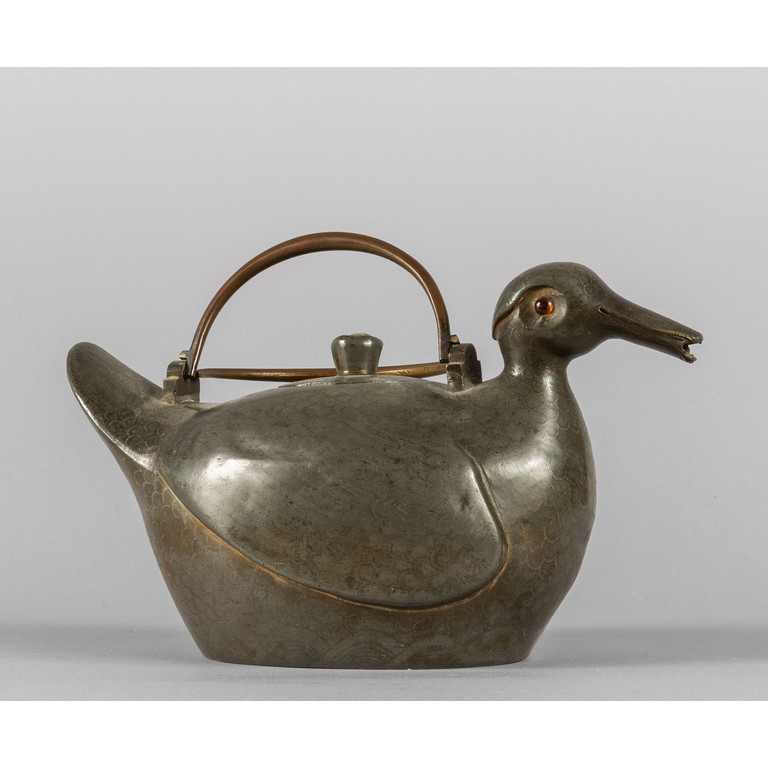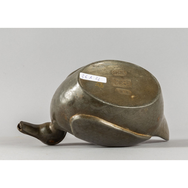 Previous Lot 0358 Next Aste Boetto - Via Mura dello Zerbino 10R, 16122 Genova ASTA DI ARTE ORIENTALE Asta di Arte Orientale Wednesday 6 March 2024 hours 10:30 (UTC +01:00) OGGETTISTICA Theiera in bronzo a forma di anatra inizi sec.XXcm.21xh.13