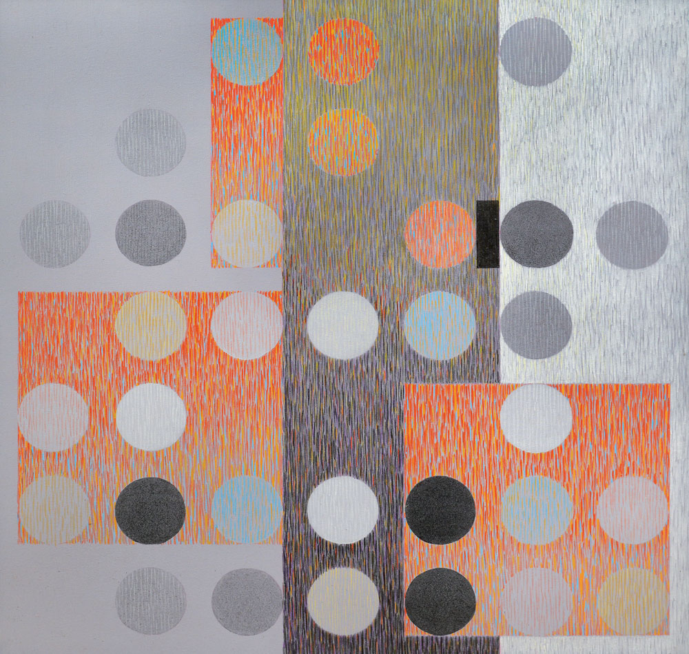 acrilici su tela cm. 87x87, firma e anno al retro, opera registrata presso l'Archivio Nangeroni come da dichiarazione su foto.
