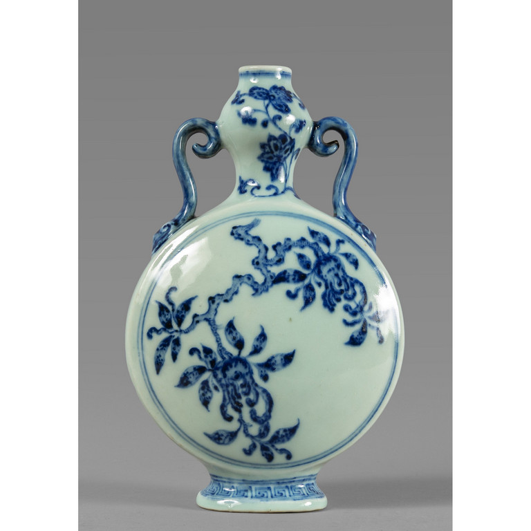 Vaso in porcellana bianca e blu decorata a motivi floreali Cina sec.XIX
