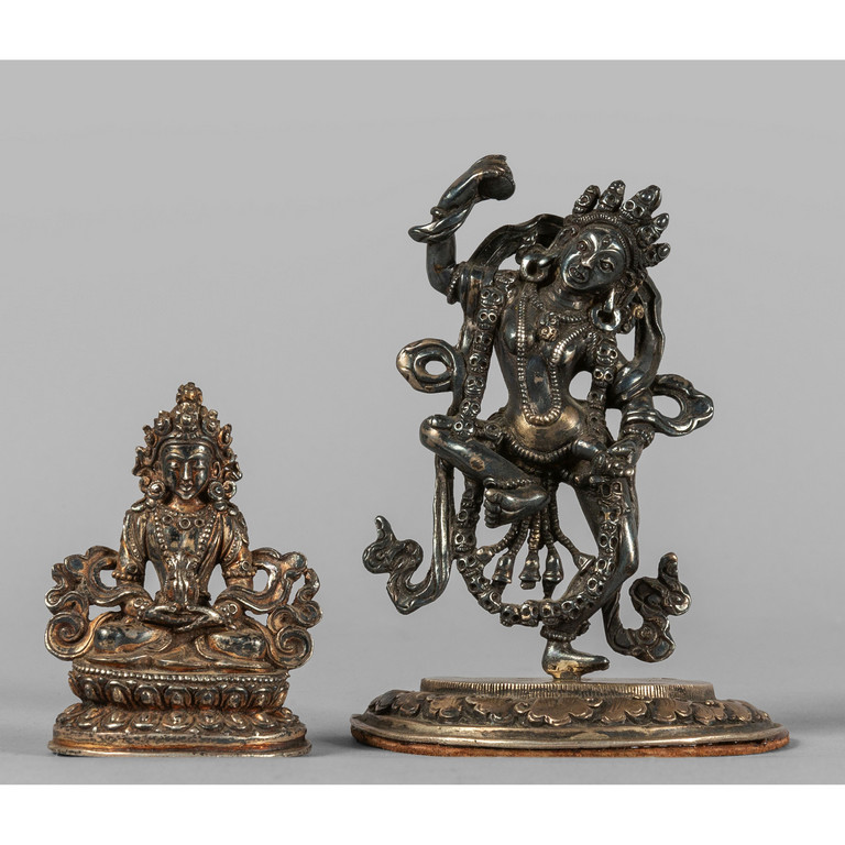 Previous Lot 0377 Next Aste Boetto - Via Mura dello Zerbino 10R, 16122 Genova ASTA DI ARTE ORIENTALE Asta di Arte Orientale Wednesday 6 March 2024 hours 10:30 (UTC +01:00) OGGETTISTICA Due sculture tibetane in argento sec.XIXh.cm.10 e 6
