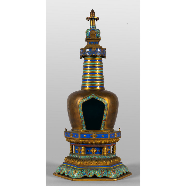 Previous Lot 0380 Next Aste Boetto - Via Mura dello Zerbino 10R, 16122 Genova ASTA DI ARTE ORIENTALE Asta di Arte Orientale Wednesday 6 March 2024 hours 10:30 (UTC +01:00) OGGETTISTICA Torre per Buddha in metallo cloisonnè sec.XIXh.cm.45