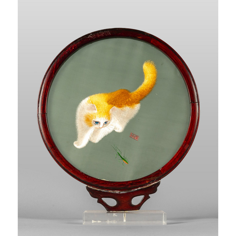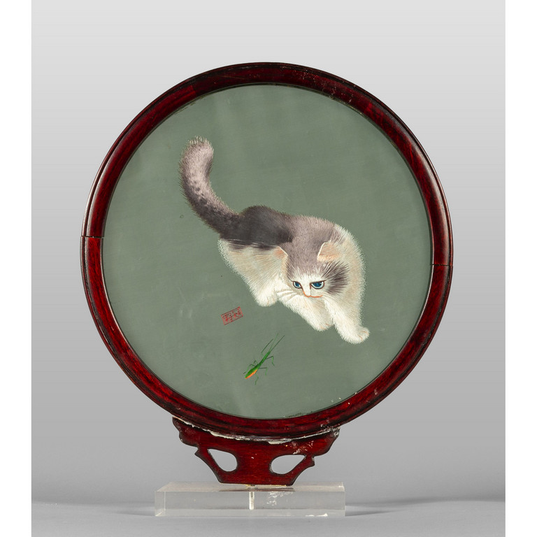 Gatto cacciatore tondo in vetro f.to Arte Oientale sec.XX
