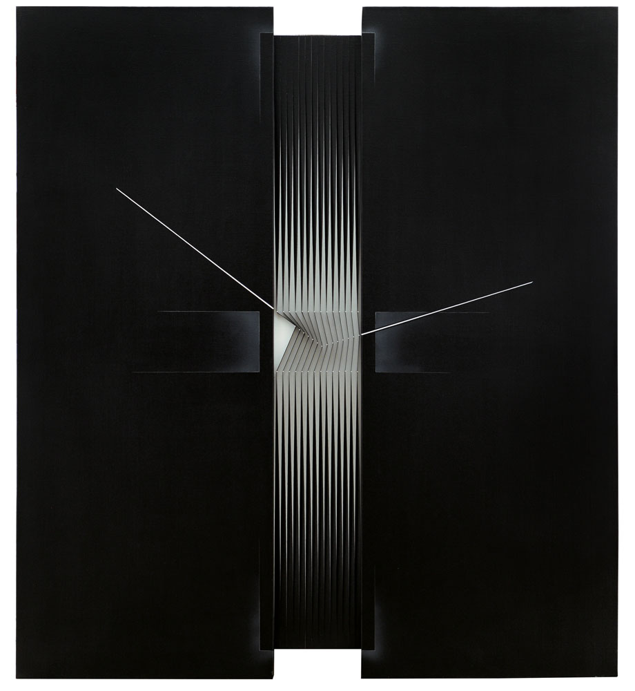 tecnica mista ed assemblaggio di tele e legni cm. 180x164, titolo, firma e anno al retro, dichiarazione d'autenticità dell'artista e Archivio Alberto Biasi n° AS 72 su foto, fotografia allegata ritraente l'artista con l'opera, priva di cornice.