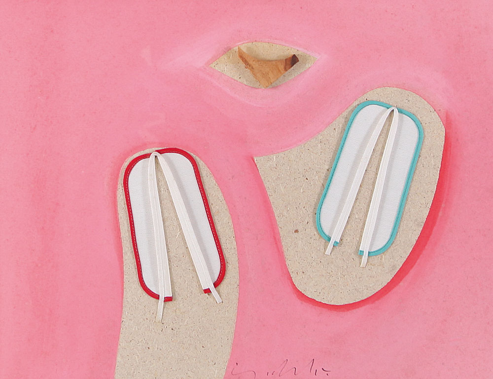 tecnica mista e applicazioni su tavola cm. 40x51, firma in basso al centro, titolo, firma ed etichetta della Galleria Annunciata (MI) al retro.