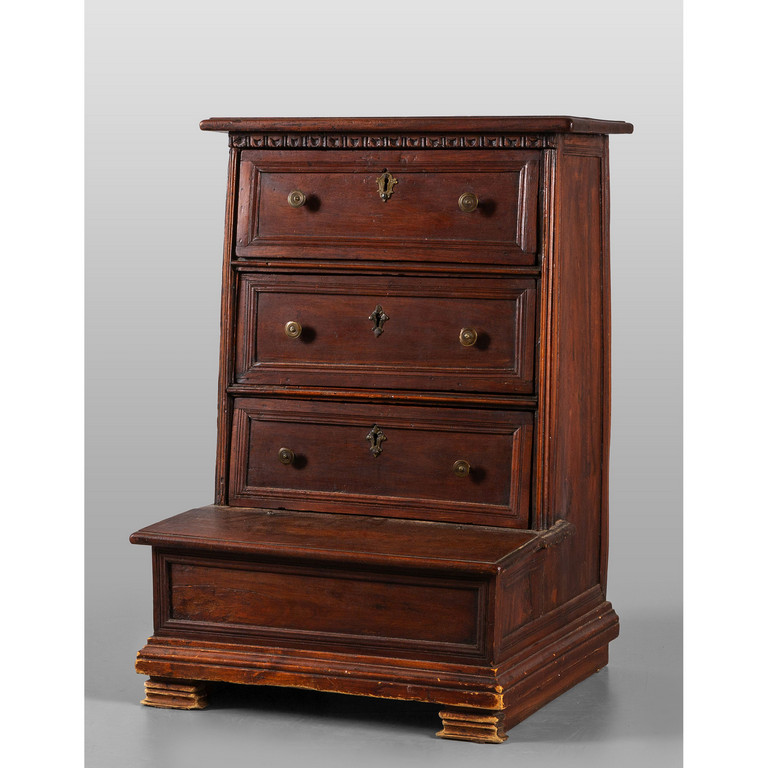 Inginocchiatoio in noce a tre cassetti con pianetto ribaltabile Emilia sec.XVIII