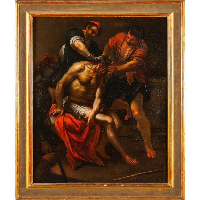 Scuola genovese sec.XVII 'Incoronazione di spine' olio