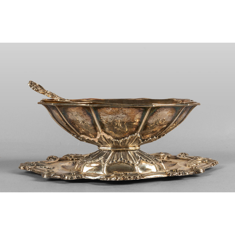 Previous Lot 0686 Next Aste Boetto - Via Mura dello Zerbino 10R, 16122 Genova ARREDI PROVENIENTI DA UNA VILLA PIEMONTESE Arredi Provenienti da una Villa Piemontese Wednesday 6 March 2024 hours 15:00 (UTC +01:00) OGGETTISTICA Salsiera barocca in argento con mestolinogr.750