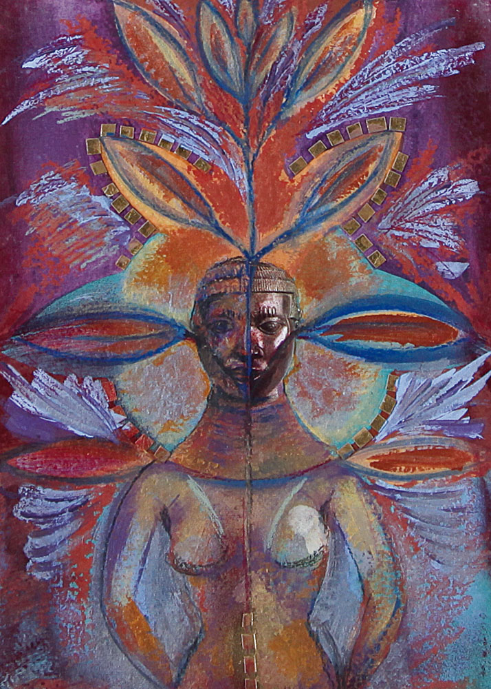 olio, tecnica mista e applicazioni su tela cm. 35x25, firma e titolo al retro.