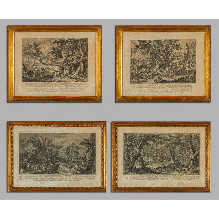 Scene di caccia due coppie di incisioni Germania sec.XVIII
