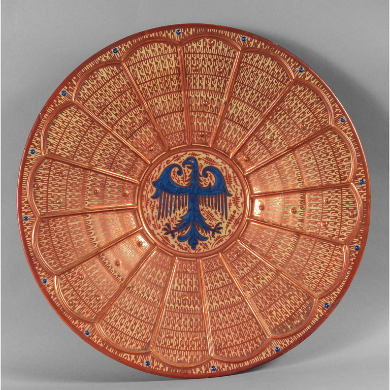 Grande piatto ispano-moresco in ceramica decorato nel cavetto con aquila fine sec.XVIII