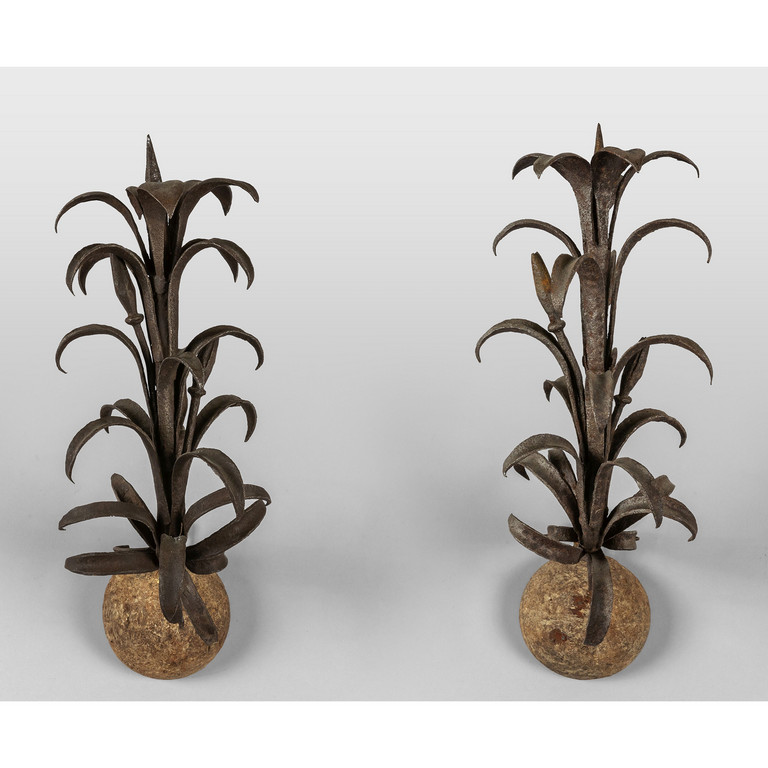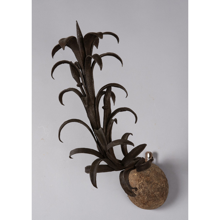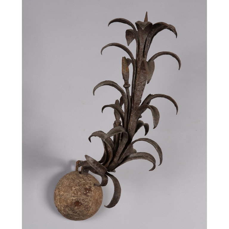 Coppia di bracci in ferro inseriti in una mezza palla in legno