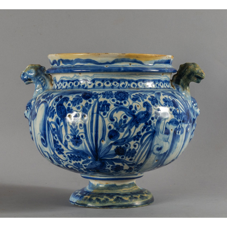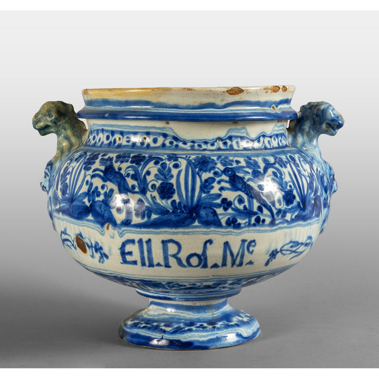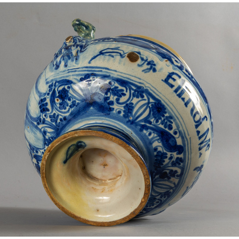Vaso in maiolica bianca e blu cartiglio LL.RAF.NL marca Tromba Savona sec.XVIII