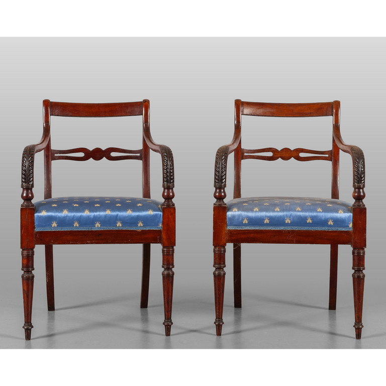 Coppia di poltrone in stile Peter in mogano Genova sec.XIX