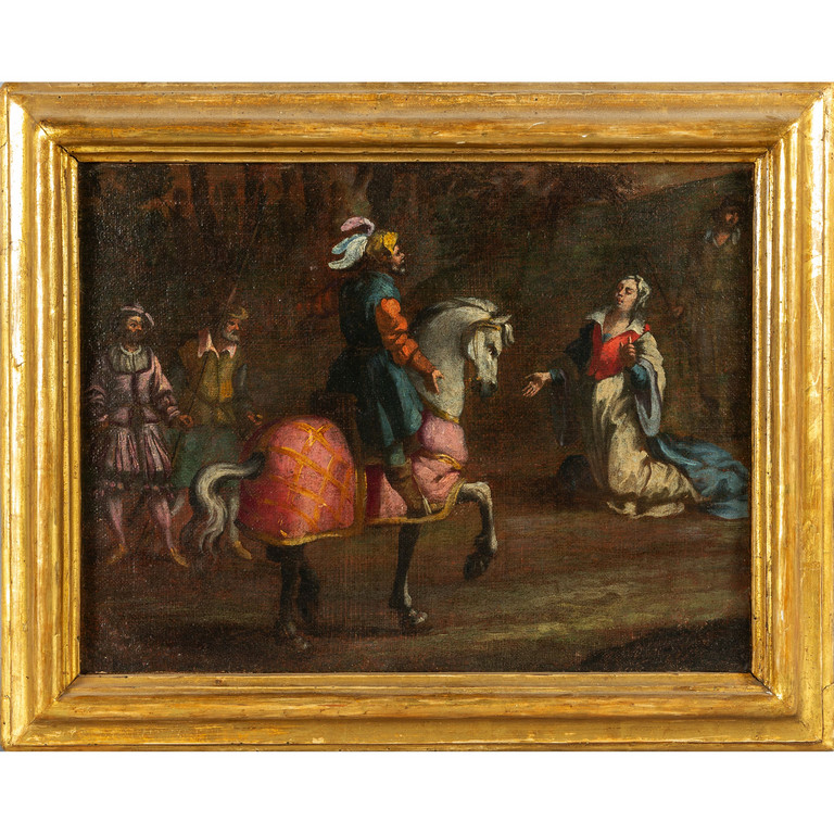 Previous Lot 0817 Next Aste Boetto - Via Mura dello Zerbino 10R, 16122 Genova ARREDI PROVENIENTI DA UNA VILLA PIEMONTESE Arredi Provenienti da una Villa Piemontese Wednesday 6 March 2024 hours 15:00 (UTC +01:00) DIPINTO 'Cavaliere con dama' olio sec.XVIIIcm. 34x25