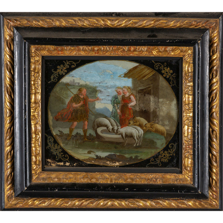 Previous Lot 0827 Next Aste Boetto - Via Mura dello Zerbino 10R, 16122 Genova ARREDI PROVENIENTI DA UNA VILLA PIEMONTESE Arredi Provenienti da una Villa Piemontese Wednesday 6 March 2024 hours 15:00 (UTC +01:00) DIPINTO 'Pastori' olio su vetro sec.XVIII difetticm. 27x23