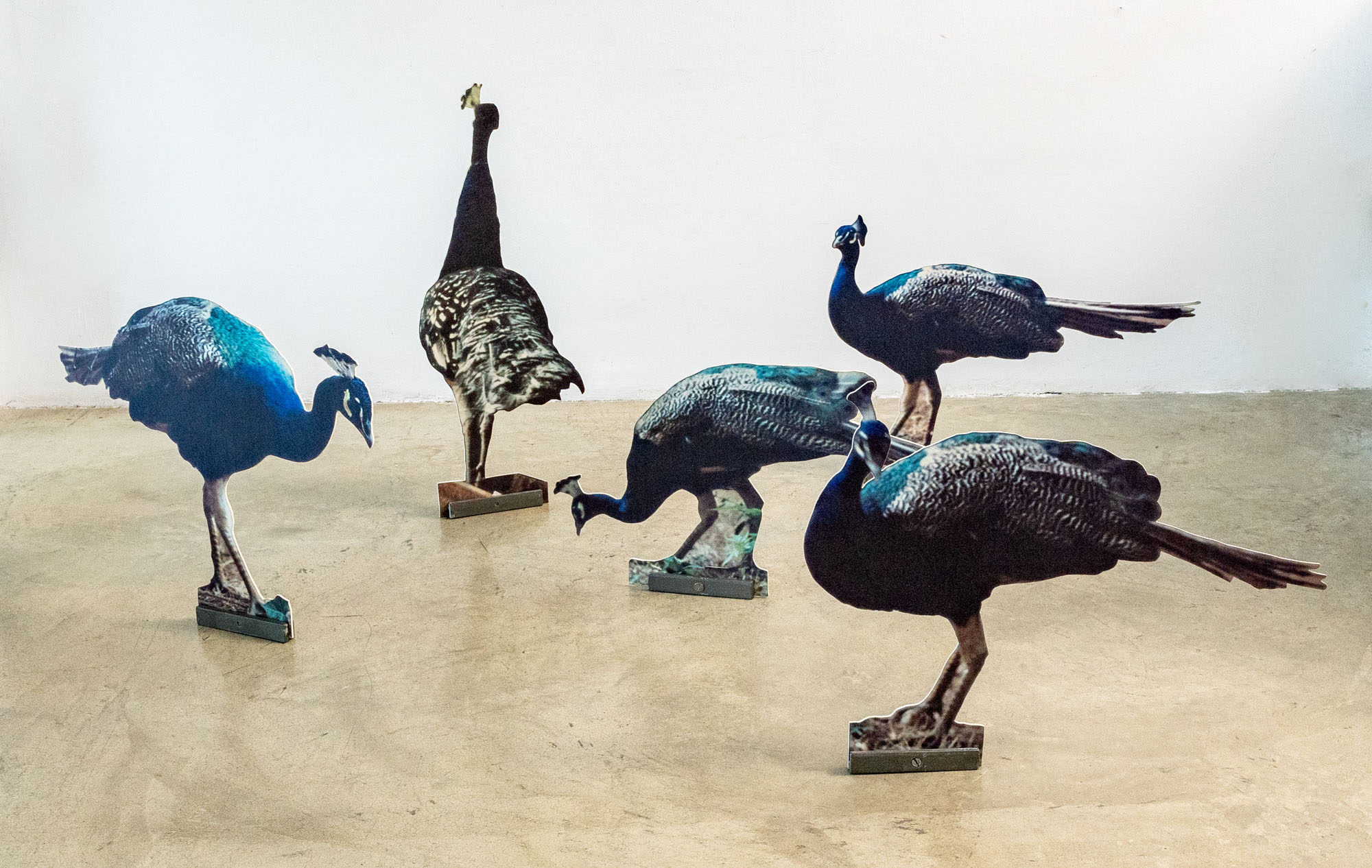 MARIO AIRÒ(1961)Pavoni1995Installazione composta da 5 stampe xerox applicate su forex a forma di pavone con piedistallo in ferroDimensioni variabiliOpera accompagnata da certficato di autenticità a cura della Galleria Massimo Minini, Brescia e firmato dall'artistaPROVENIENZA:Galleria Massimo Minini, BresciaCollezione privata, MilanoESPOSIZIONI:1995, Via col vento, Galleria Massimo Minini, Brescia1 maggio - 23 giugno 1997, Odisseo (Ulysses), a cura di Giacinto Di Pietrantonio, Stadio della Vittoria, BariBIBLIOGRAFIA:G. Romano (a cura di), Odisseo (Ulysses), catalogo dell'omonima mostra tenutasi presso il Centro d'Arte del Comune di Atene, Atene, 1996, Istituto italiano di cultura, s.p. (ill.)G. Di Pietrantonio (a cura di), Odisseo (Ulysses), catalogo dell'omonima mostra tenutasi presso lo Stadio della Vittoria, Bari, 1997, Arte Nova, Pescara, p. 23 (ill.)