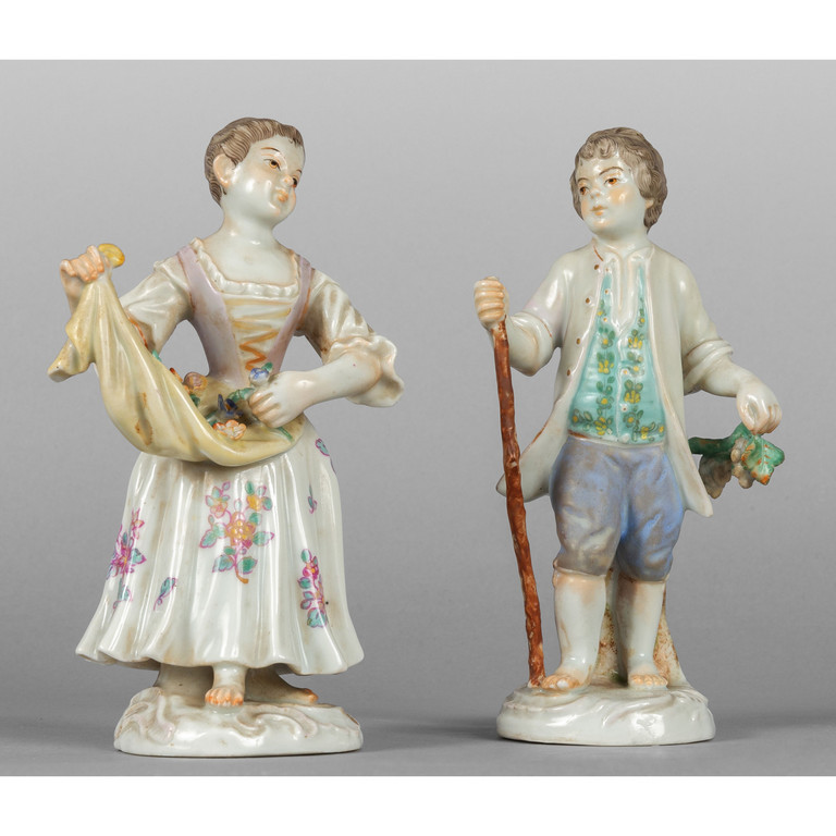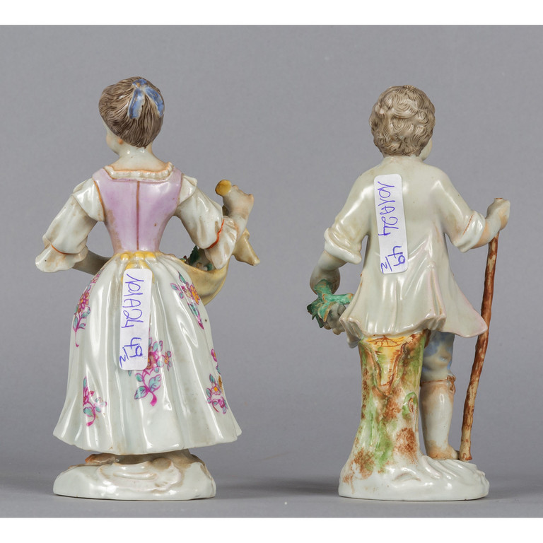 Coppia di piccole sculture in porcellana di Meissen policroma sec.XIX