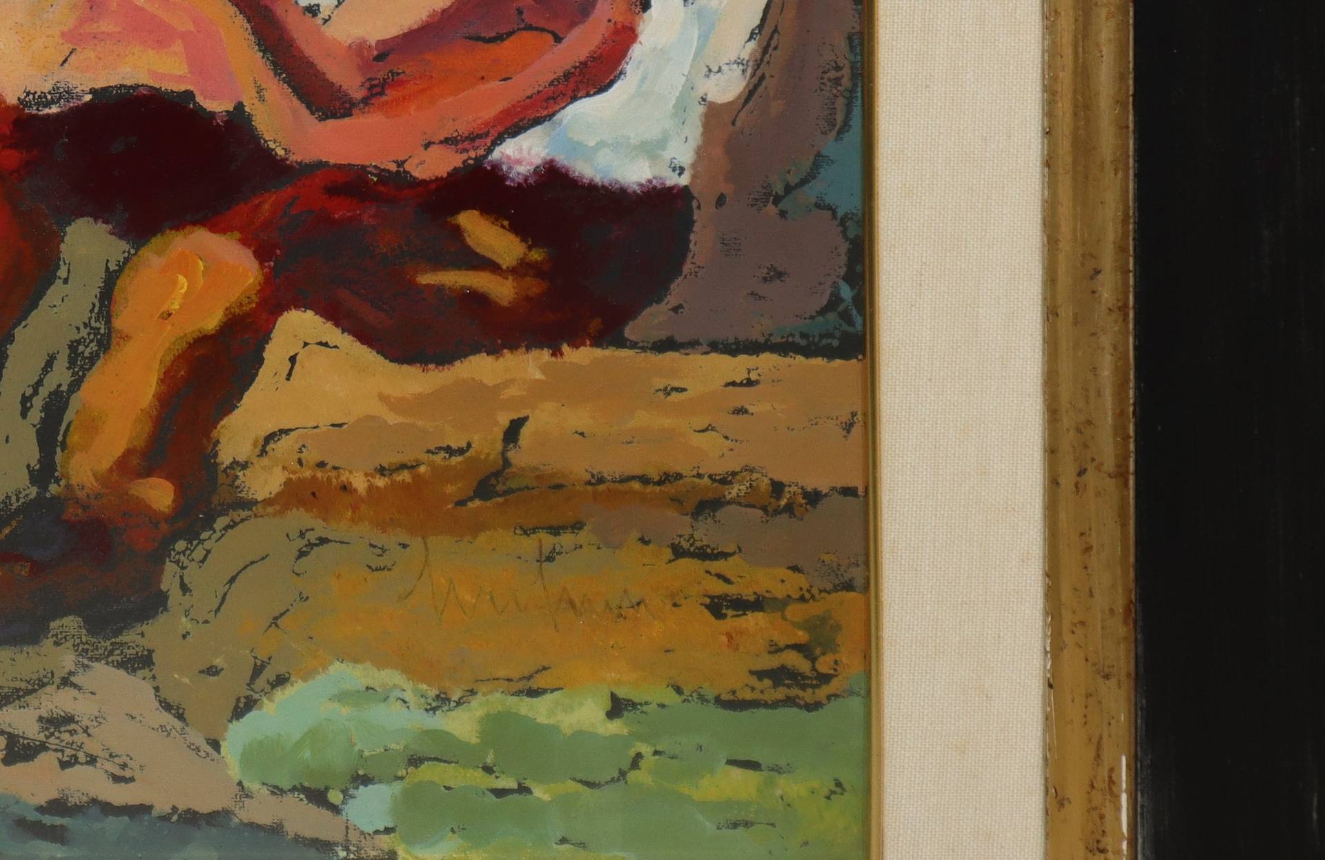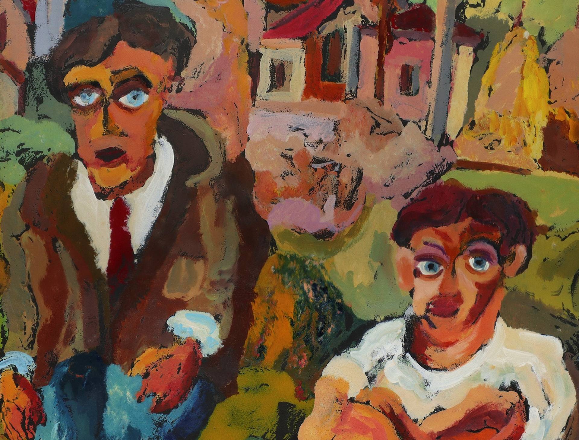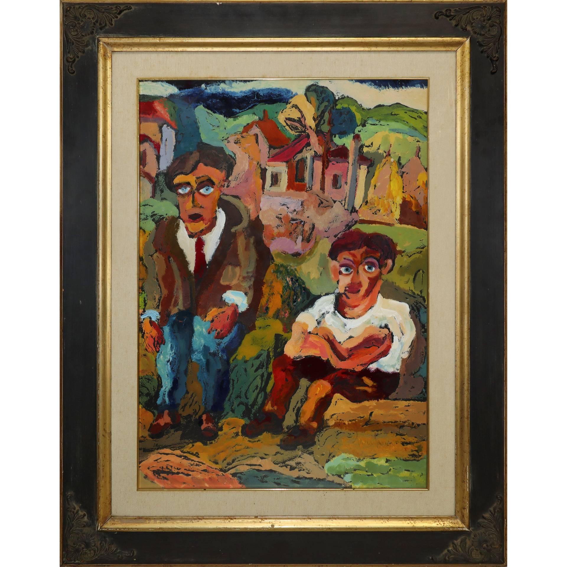 Beppe Serafini (Montelupo Fiorentino 1915-Montelupo Fiorentino 1987) - Uomo e bambino cm 70X49 in cornice cm 94X74 Olio su cartone