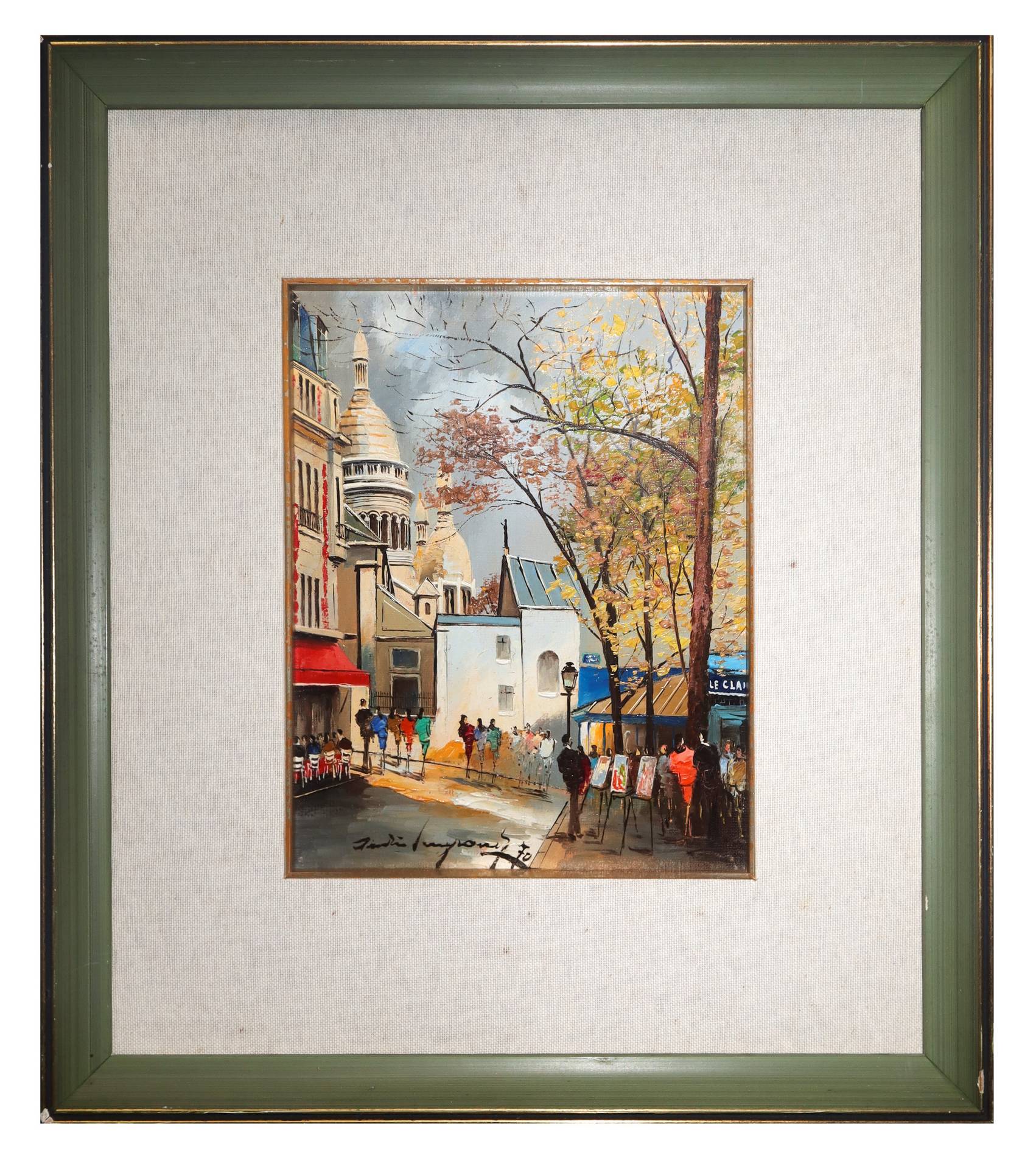 Place du tertre cm 24 x cm 19, in cornice cm 42 x cm 37 olio su tela Firmato e datato 1970