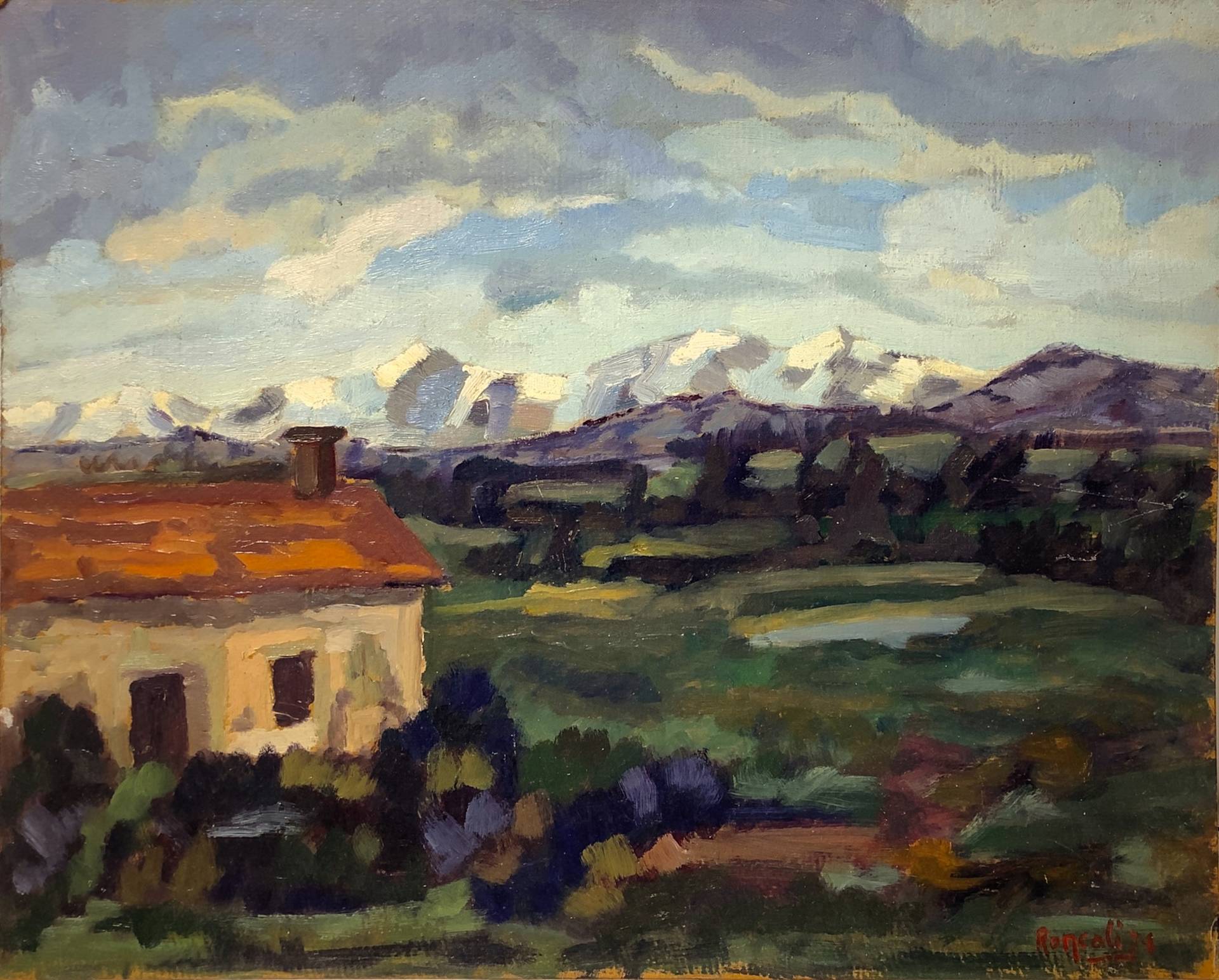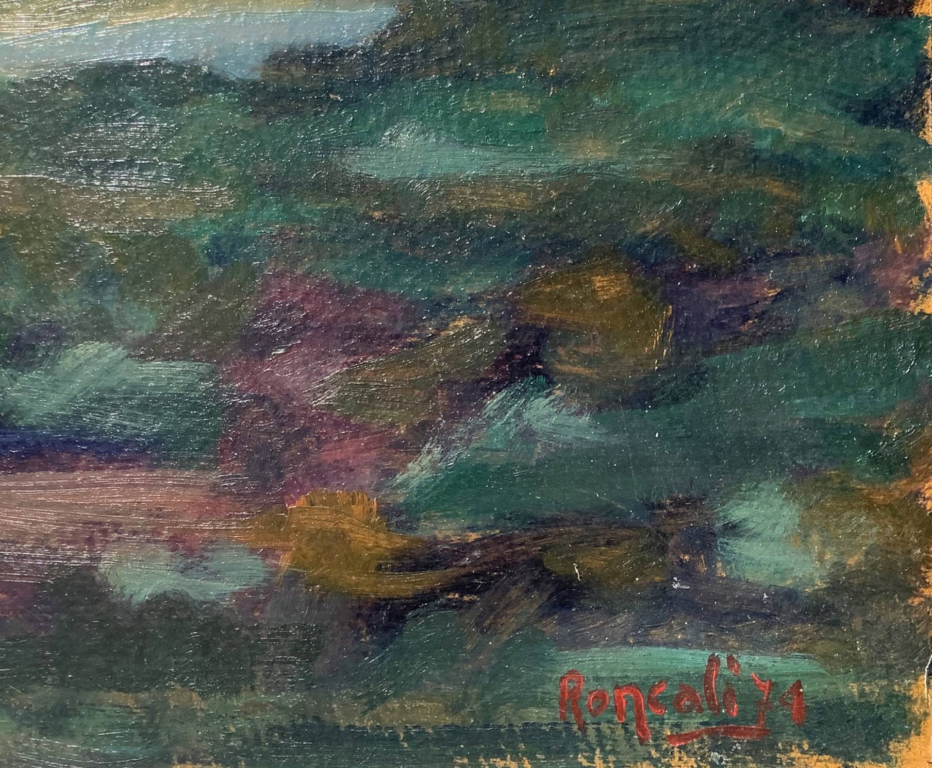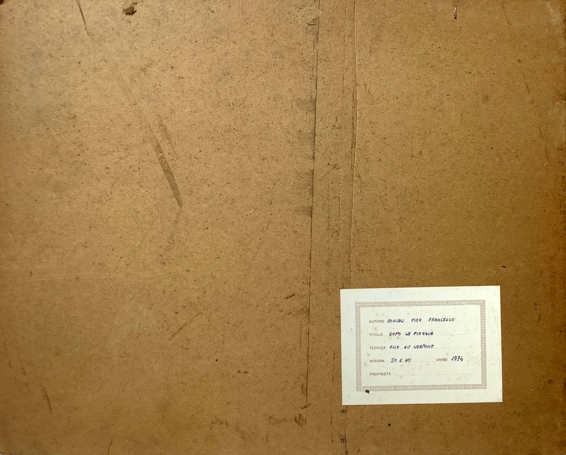 Dopo la pioggia Cm 40x50 Olio su cartone Sul retro è indicato il nome Roncali Pier Francesco, firmato in basso a destra Roncali 74.