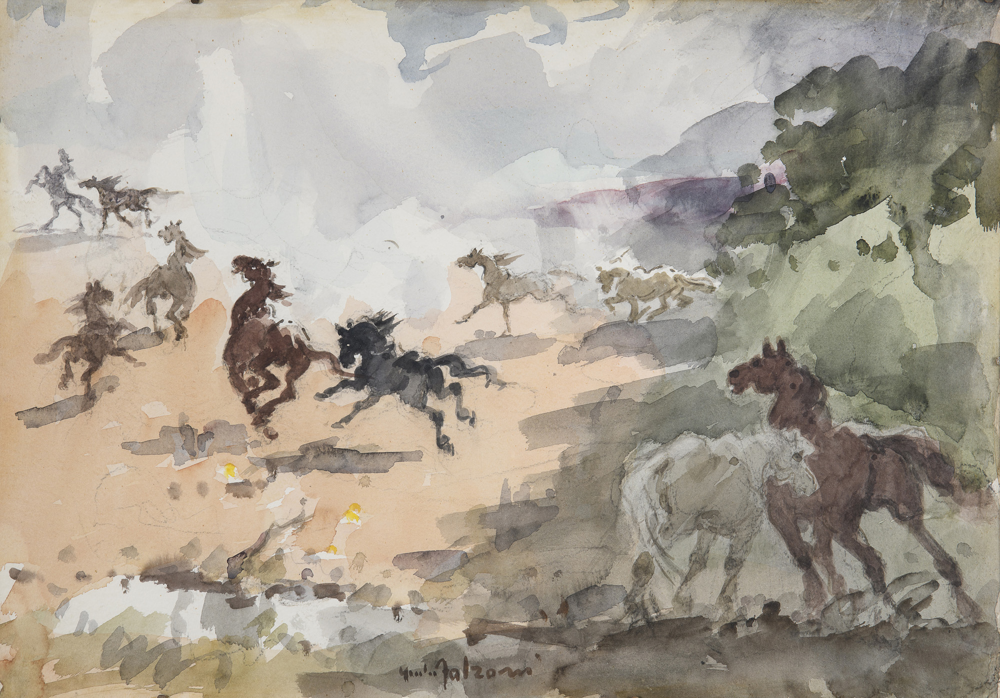 ACQUERELLO CAVALLI DI GIULIO FALZONI